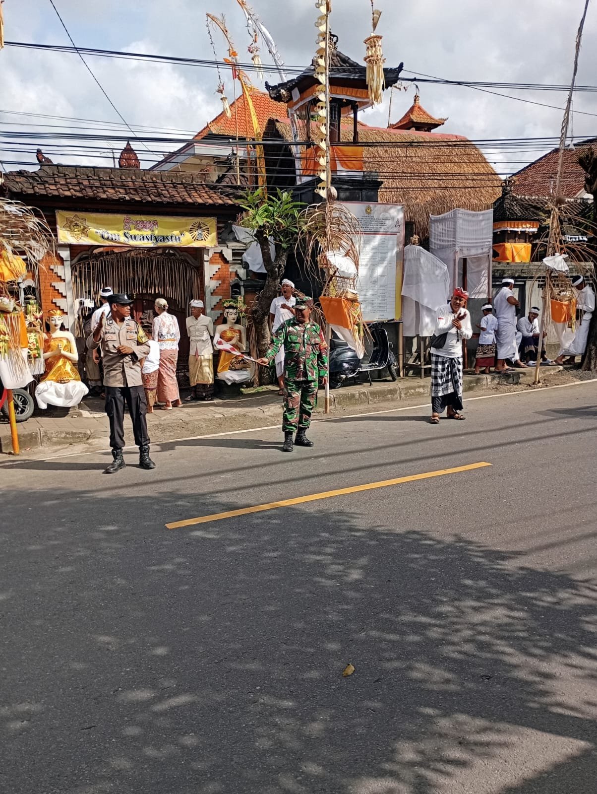 Hal tersbut ditegaskan Babinsa Takmung Serka Yulianta usai melaksanakan pengawalan dan pengamanan upacara tersebut bersama Bhabinkamtibmas dan pecalang.