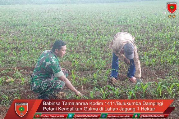 Babinsa Tamalanrea Kodim 1411/Bulukumba Dampingi Petani Kendalikan Gulma di Lahan Jagung 1 Hektar