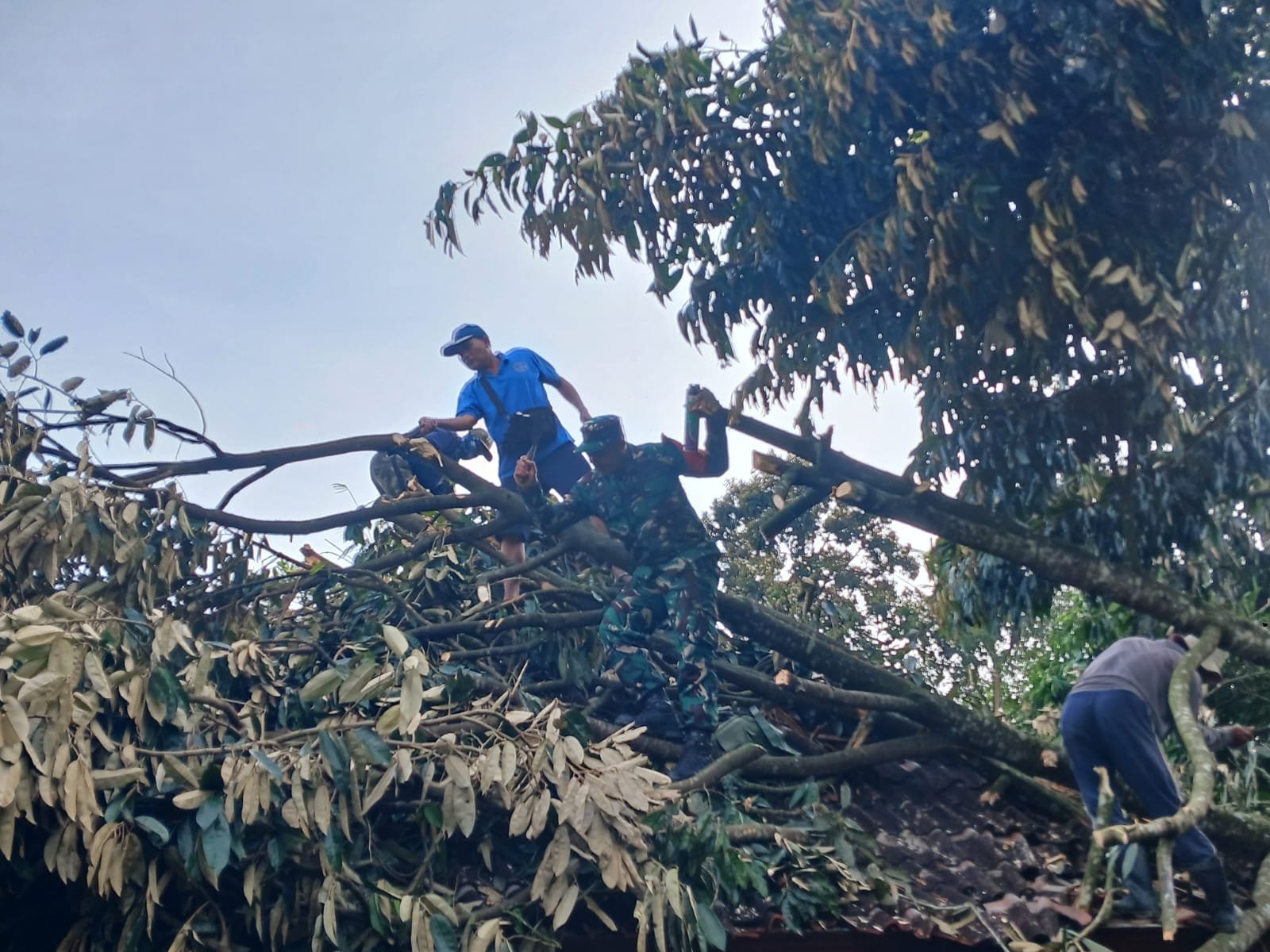 Peristiwa ini dilatarbelakangi oleh cuaca buruk yang menyebabkan dua pohon besar tumbang, memicu kekhawatiran akan keselamatan penghuni rumah dan gangguan aktivitas sehari-hari di lingkungan sekitar. Menyikapi situasi ini, Babinsa dan warga sepakat untuk bertindak cepat, dengan menggunakan peralatan seadanya untuk memotong dan membersihkan batang serta ranting yang menghalangi.