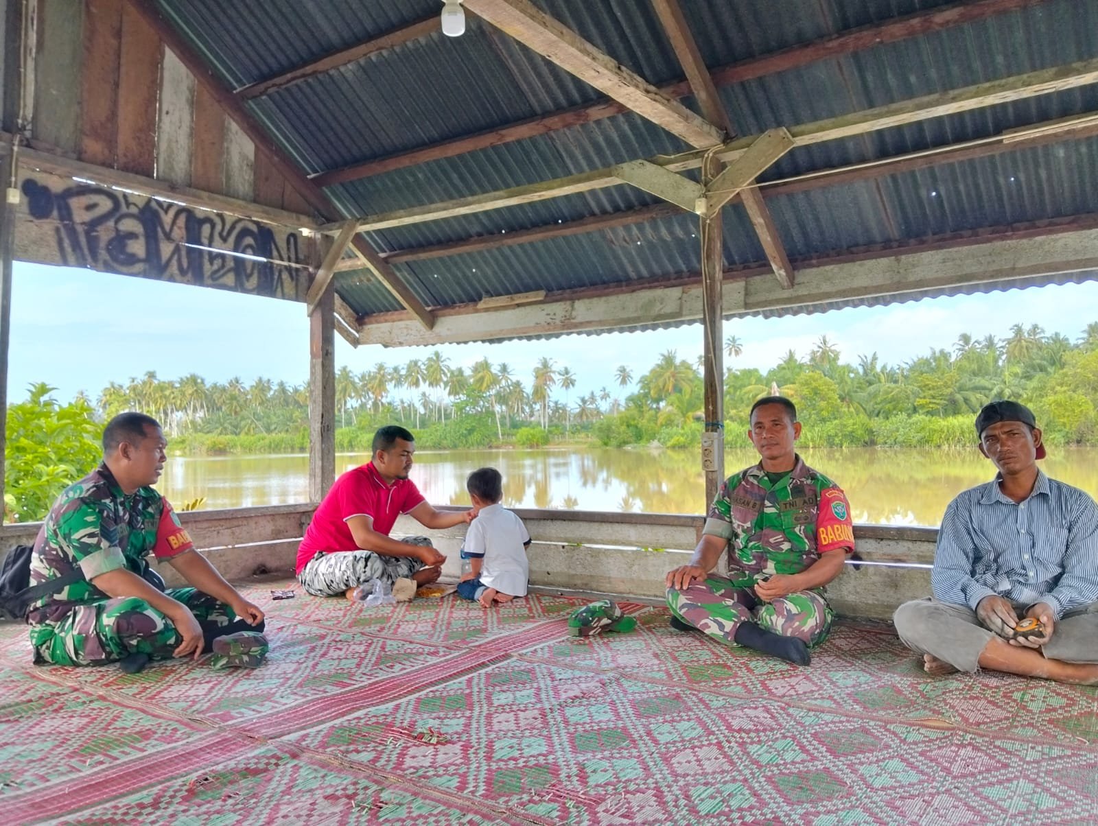 Di tengah obrolan yang hangat, Babinsa menyampaikan imbauan penting terkait keselamatan anak-anak di sekitar aliran sungai. Warga diingatkan agar lebih berhati-hati, terutama saat membawa anak-anak beraktivitas di dekat sungai yang berada tidak jauh dari permukiman.
