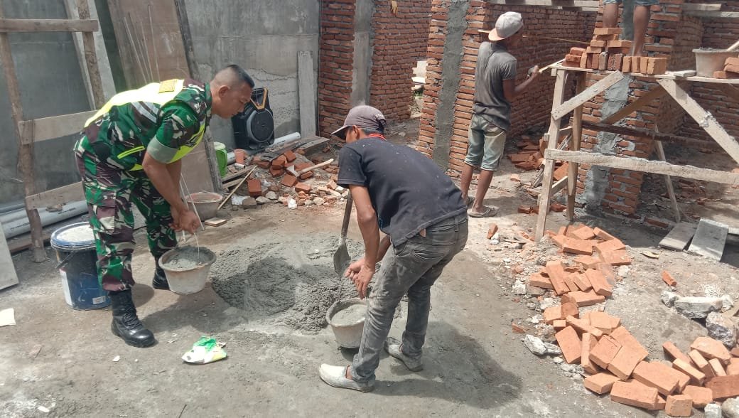 Rumah tersebut milik Bapak Irwansyah. Babinsa bersama warga lainnya berinisiatif memberikan bantuan tenaga secara gotong royong untuk mempercepat proses pembangunan.