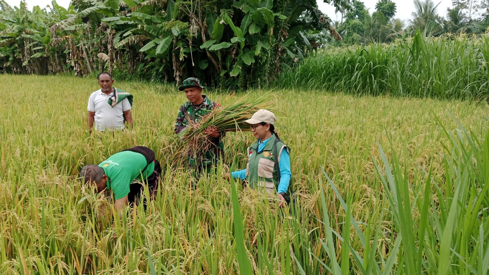Klungkung, Senin (26/01/2026) – Serka Dewa Putu Carma Mudita, anggota Babinsa Tusan dari Koramil 1610-02/Banjarangkan, berkolaborasi dengan Penyuluh Pertanian Lapangan (PPL) Banjarangkan dalam pengambilan ubinan padi di Tempek Tengah Subak Lunjungan, Desa Tusan, Kecamatan Banjarangkan, Kabupaten Klungkung. Kegiatan ini bertujuan untuk memprediksi produktivitas padi petani dan memperkuat ketahanan pangan di wilayah setempat.