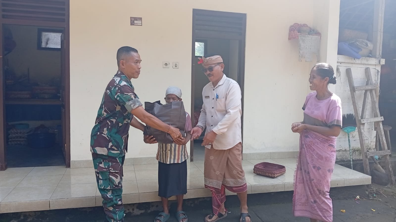 Penyerahan dilakukan secara simbolis di Makodim 1626/Bangli oleh Dandim 1626/Bangli Letkol Arm I Gede Arya Girinatha Utama. Selanjutnya, penyaluran bantuan di wilayah Kecamatan Tembuku dipimpin langsung oleh Danramil 1626-03/Tembuku Kapten I Komang Gita bersama jajaran Babinsa yang membagikan paket sembako kepada masyarakat penerima.