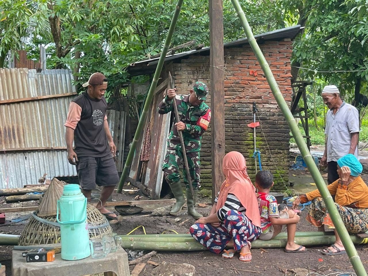 Kegiatan ini dilakukan sebagai bentuk pengabdian dan wujud nyata kepedulian Tentara Nasional Indonesia (TNI) terhadap masyarakat, khususnya mereka yang sedang mengalami kesulitan. Babinsa setempat, dengan sigap dan penuh semangat, turut membantu proses pembangunan rumah milik salah satu warga yang membutuhkan.