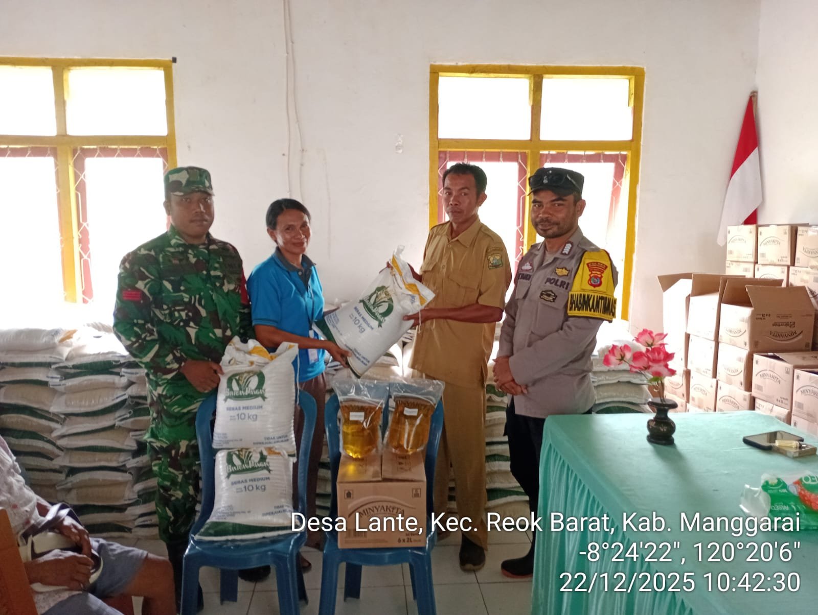 Bantuan yang disalurkan terdiri dari 20 kilogram beras dan 4 liter minyak goreng per Kepala Keluarga (KK), yang ditujukan untuk mendukung kebutuhan pokok masyarakat. Penyaluran ini dihadiri oleh berbagai pihak, termasuk Sekretaris Desa Lante dan Bhabinkamtibmas Polsek Reok, yang turut memastikan bahwa proses berlangsung dengan tertib dan aman.