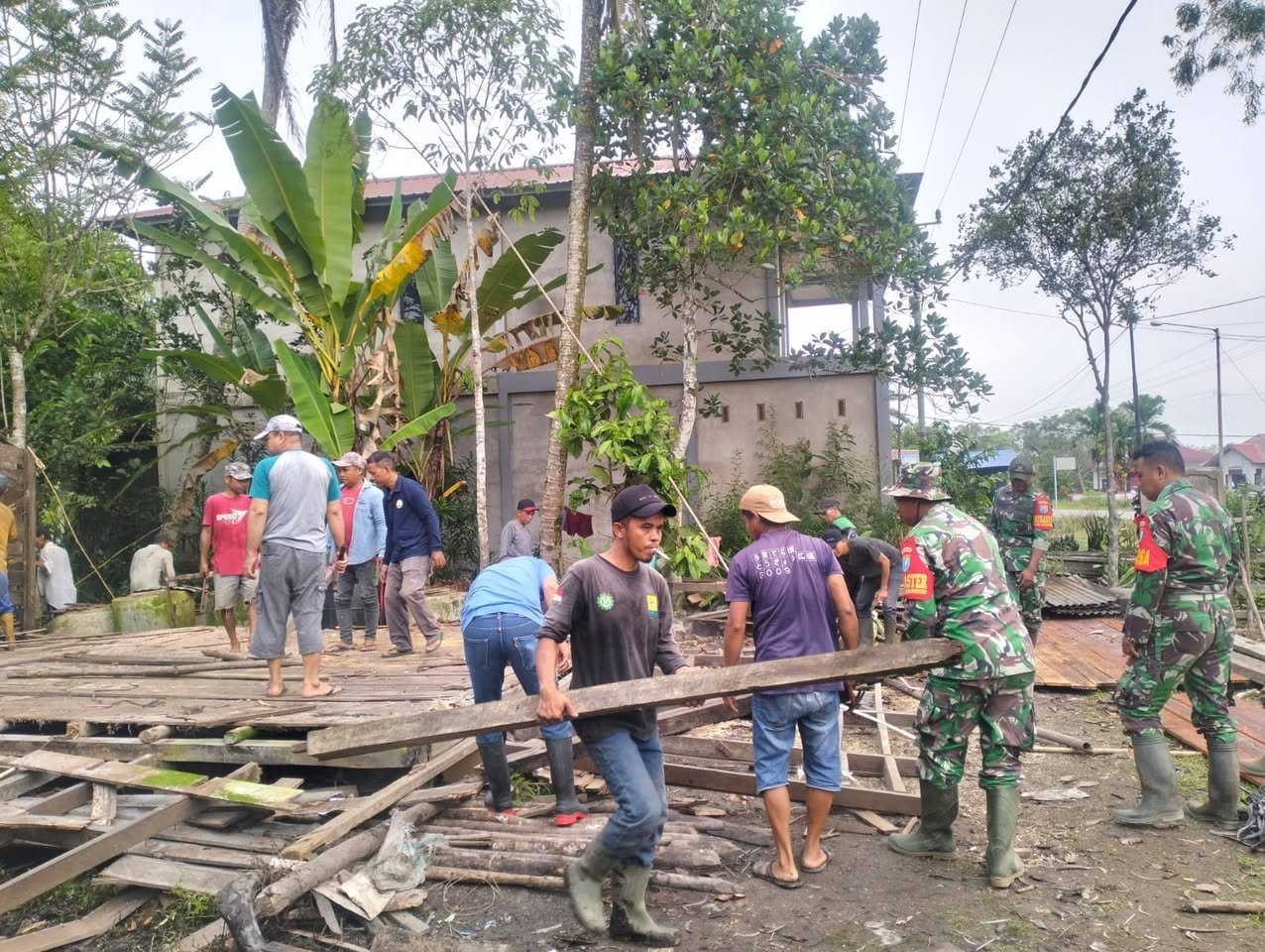 Bentuk Kepedulian Terhadap Sesama Koramil Dan Forkopincam Sejangkung Laksanakan Karya Bakti Bedah Rumah Tidak Layak Huni