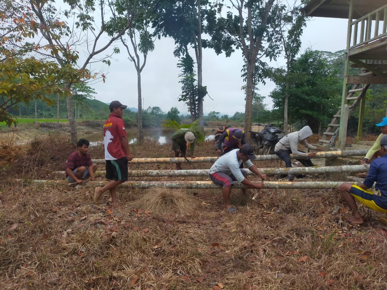Konawe _ Anggota Satgas TMMD 125 Kodim 1417/Kendari dengan tanggap membantu warga yang sedang menghaluskan pohon pinang dalam rangka pelaksanaan Lomba guna memperingati HUT RI Ke-80, di Kecamatan Asinua, Kabupaten Konawe, Kamis (7/8).