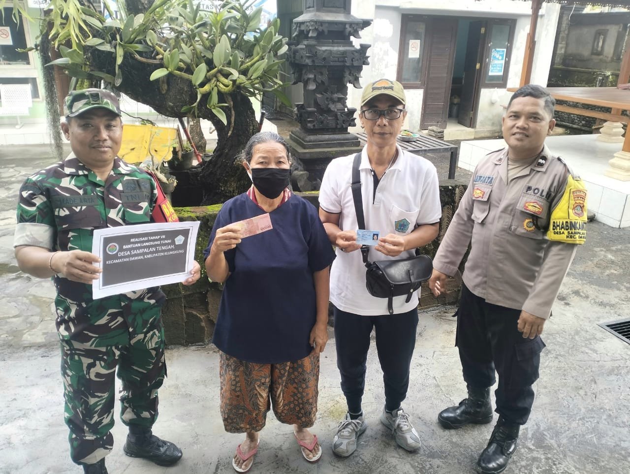 Babinsa Sampalan Tengah Serka Made Arta menjelaskan bahwa Bantuan langsung Tunai dana Desa ( BLT DD ) ini merupakan program yang digelar pemerintah dengan bersumber dari dana desa untuk membantu keluarga kurang mampu dalam pemenuhan kebutuhan pokok.