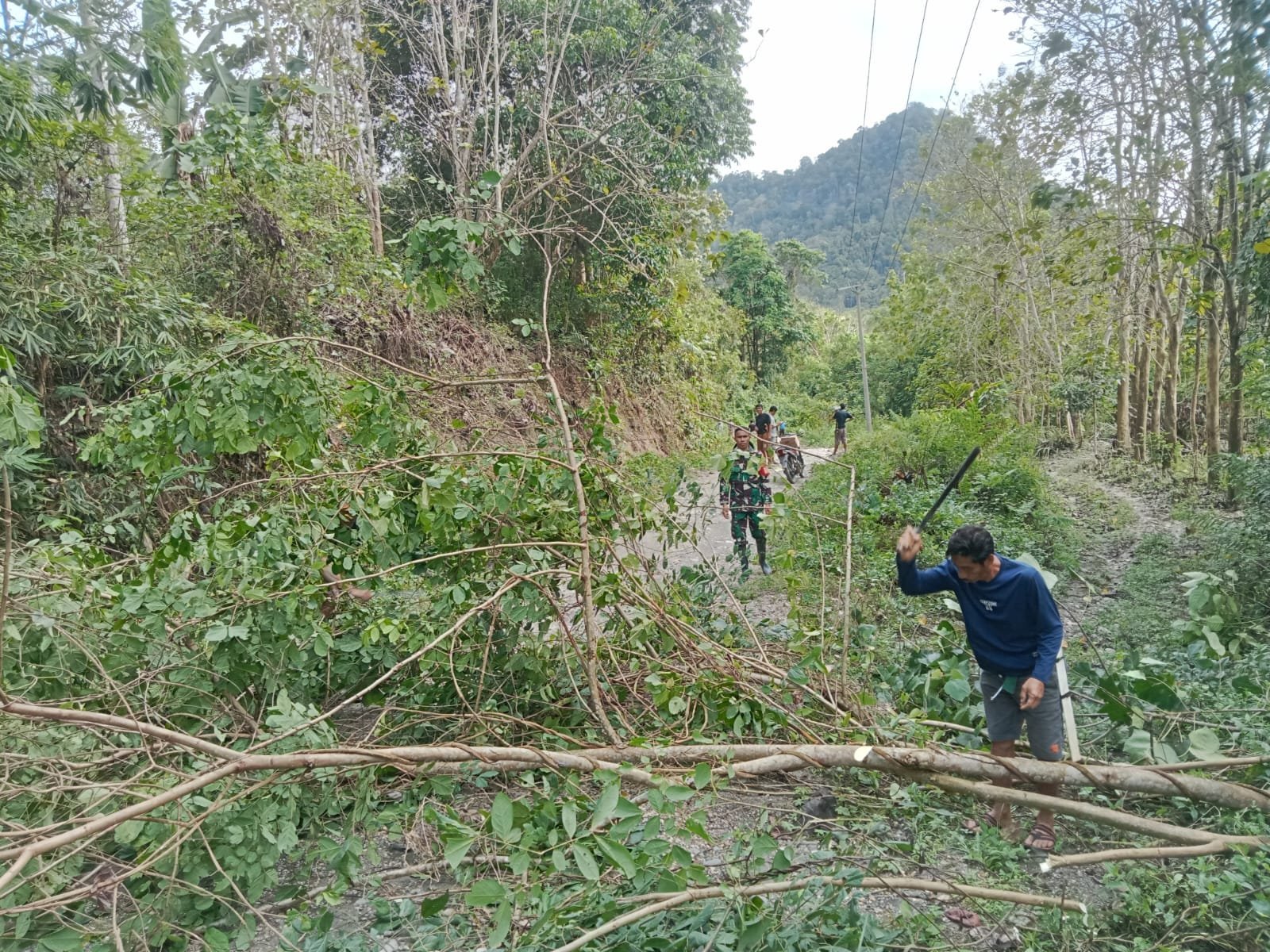 Dengan penuh semangat kebersamaan, para prajurit dan warga bergotong royong membersihkan sisi kiri dan kanan jalan dari rumput liar serta menyingkirkan tumpukan tanah yang menghambat drainase. Kerja sama tersebut dilakukan guna menjaga kelancaran akses dan meningkatkan kenyamanan warga dalam beraktivitas.