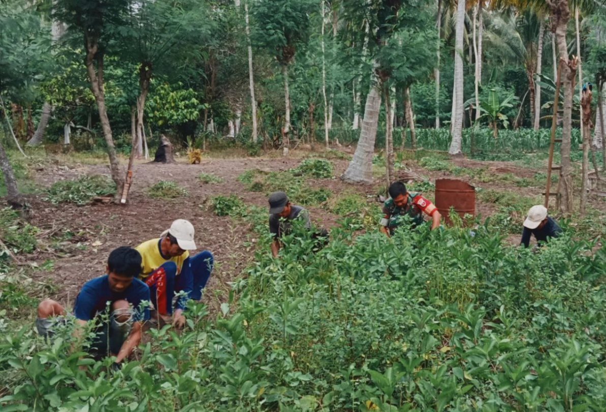 Bersihkan Kebun Kelapa, Babinsa Kodim 1401/Majene Dorong Warga di Wilayah Binaan Lebih Produktif