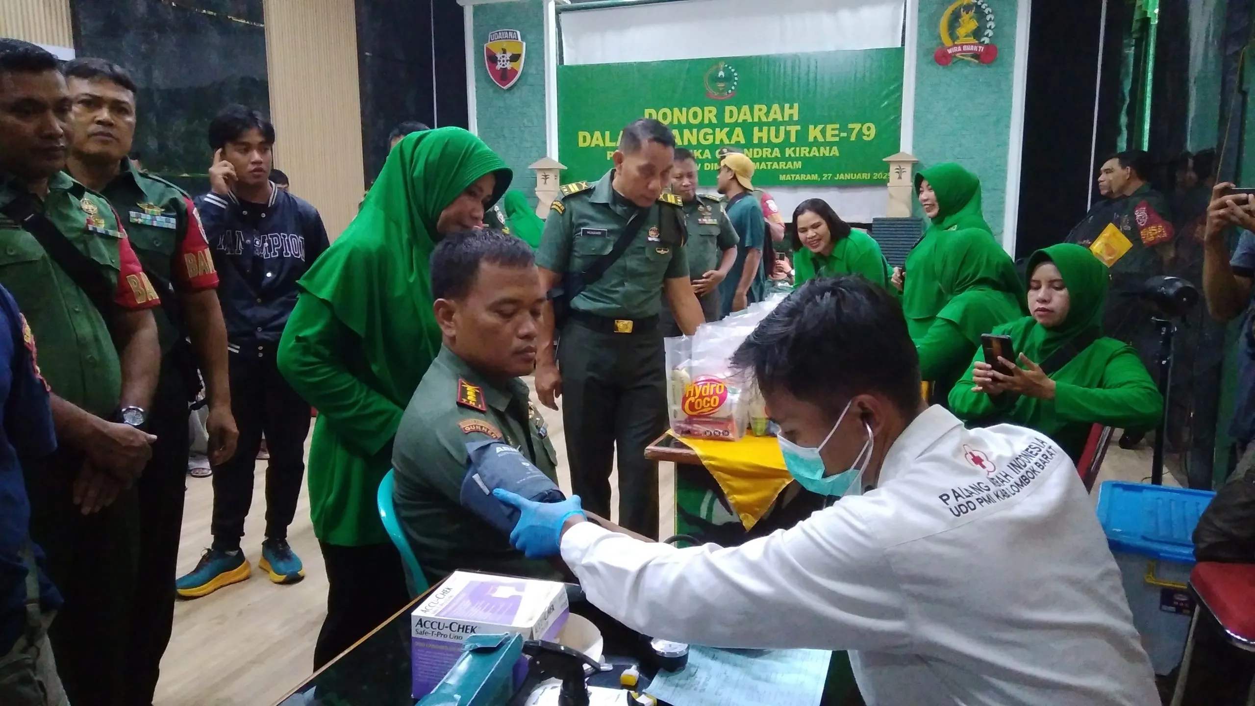 Mataram, NTB – Dalam rangka memperingati Hari Ulang Tahun (HUT) Ke-64 Komando Resort Militer (Korem) 162/WB dan HUT Ke-79 Persit Kartika Chandra Kirana (KCK), Komando Distrik Militer (Kodim) 1606/Mataram menggelar Bhakti Sosial Donor Darah di Aula Makodim 1606/Mataram, Jalan Pejanggik No. 37, Kecamatan Mataram, Kota Mataram, Senin (27/1/2025).