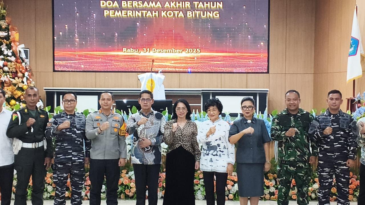 BITUNG – Dalam menyambut pergantian tahun 2025, Pemerintah Kota Bitung menggelar ibadah doa bersama yang dipimpin oleh Forum Koordinasi Pimpinan Daerah (Forkopimda) pada Rabu, 31 Desember 2025. Acara berlangsung di Gedung BPU S. H. Sarundajang, yang terletak di Jalan Sam Ratulangi, Kelurahan Bitung Barat Satu, Kecamatan Maesa.