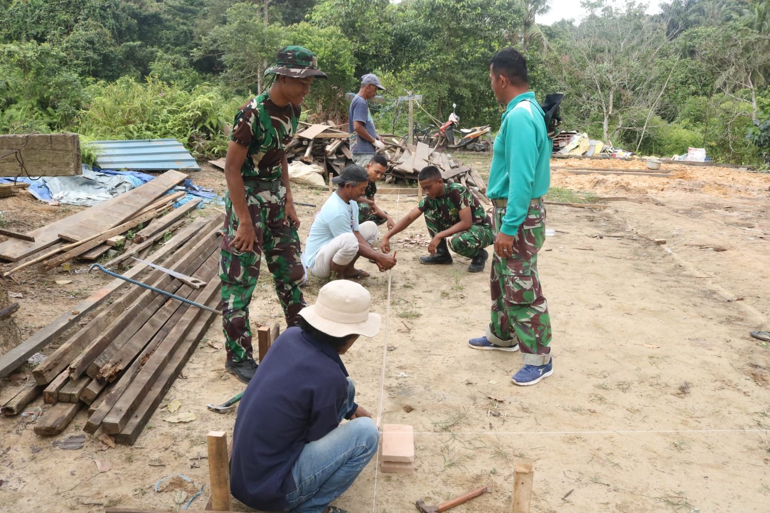 KUTAI TIMUR – Di tengah terik matahari yang menyengat di Desa Suka Rahmat, Kecamatan Teluk Pandan, Kutai Timur, sebuah pemandangan haru sekaligus menginspirasi tersaji. Program TNI Manunggal Membangun Desa (TMMD) Ke-125 Kodim 0909/Kutai Timur hari ini secara resmi memasuki tahap krusial perehaban Rumah Tidak Layak Huni (RTLH) milik Rahman, seorang pekerja bangunan yang kesehariannya berjuang menafkahi keluarga.