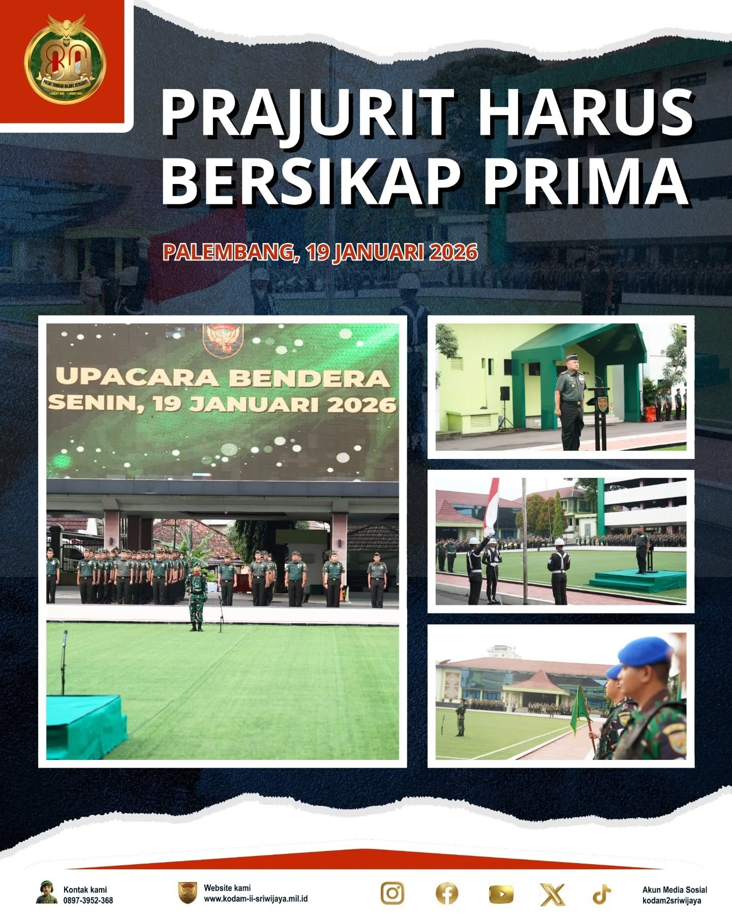 Makodam II/Sriwijaya menggelar Upacara Bendera Bulanan yang dipimpin oleh Irdam II/Swj Brigjen TNI M. Fachmi Rizal Nasution pada Senin (19/01/2026).