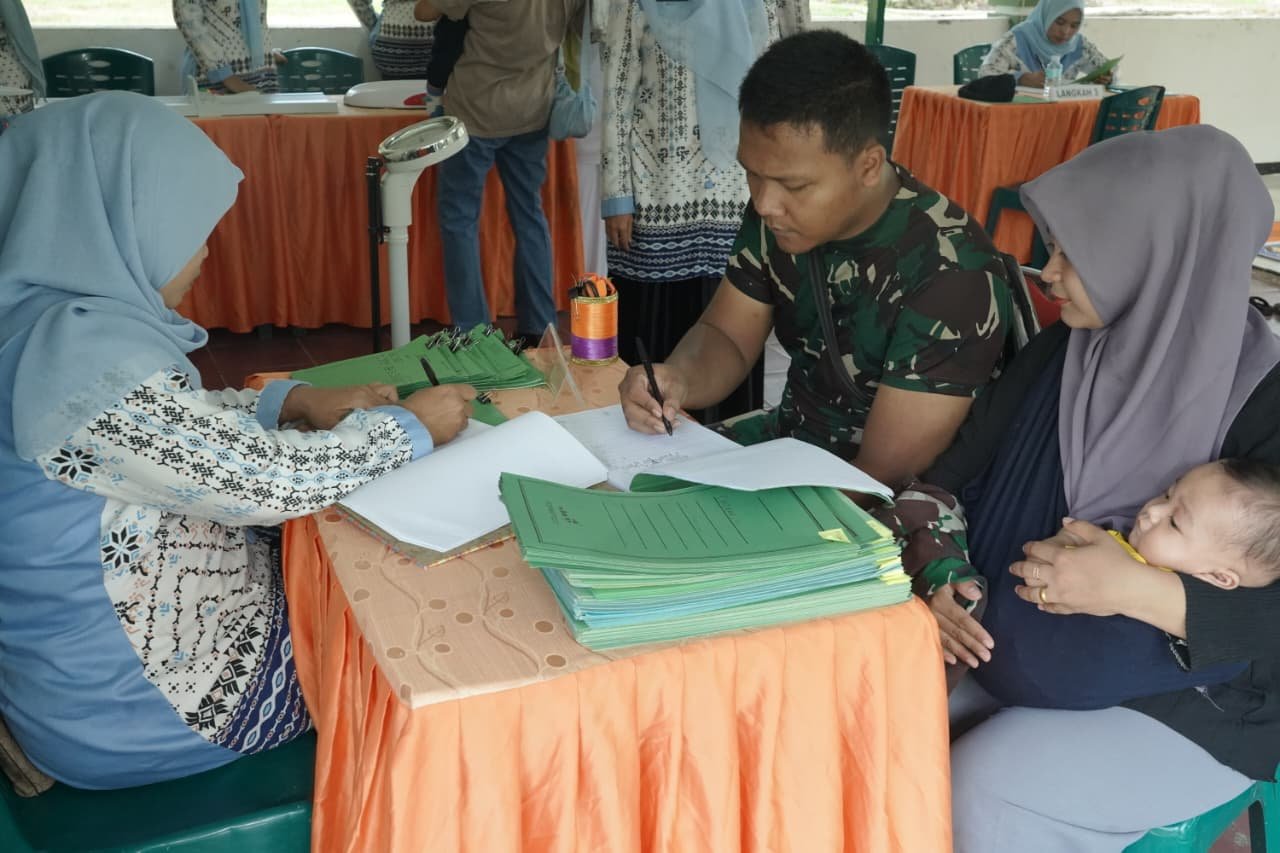 Aceh Barat – Korem 012/Teuku Umar melalui Posyandu Cempaka menggelar kegiatan pemeriksaan kesehatan bagi prajurit, ibu hamil dan menyusui, serta