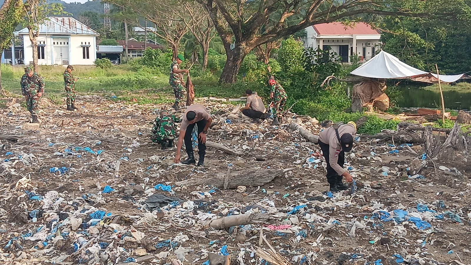 Meulaboh – Wujud kepedulian terhadap kebersihan lingkungan dan kesehatan masyarakat, personel Detasemen Kesehatan Wilayah (Denkesyah) Meulaboh melaksanakan kegiatan pembersihan di