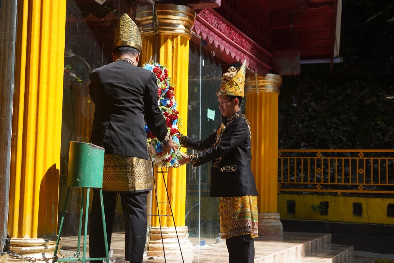 Aceh Barat – Kasi Log Kasrem 012/Teuku Umar mengikuti upacara ziarah dalam rangka memperingati Syahidnya Pahlawan Nasional Teuku Umar ke-127