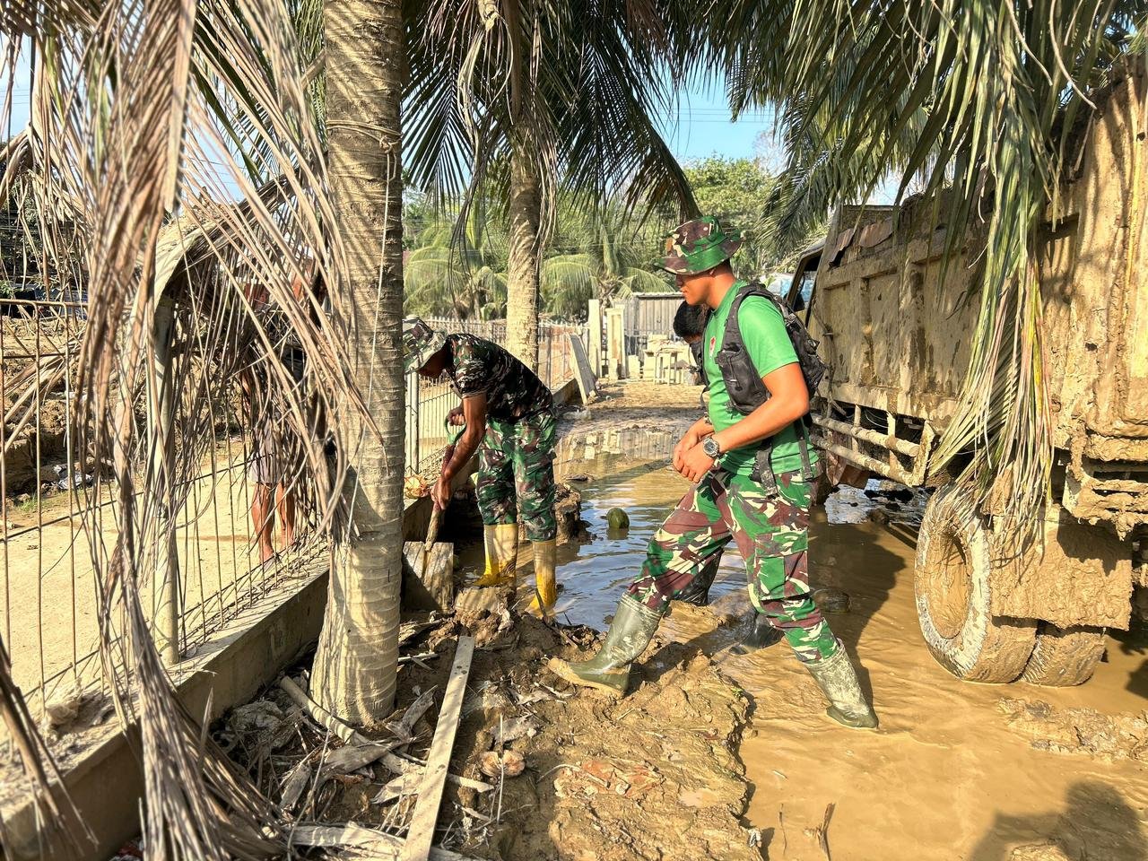 Aceh Tamiang – Komitmen dan kepedulian TNI terhadap masyarakat kembali ditunjukkan oleh Prajurit Macan Leuser yang melanjutkan aksi heroik membersihkan