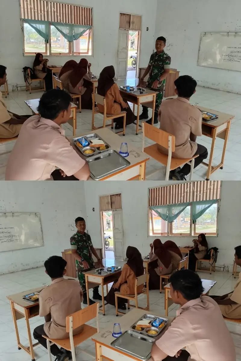 ACEH BARAT – Babinsa Koramil 04/Mrb Kodim 0105/Abar, Sertu Zainal Abidin, menyampaikan materi Wawasan Kebangsaan dan Bela Negara kepada siswa-siswi SMA