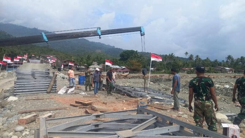 Nagan Raya – TNI Angkatan Darat melalui Kodam Iskandar Muda terus melakukan percepatan pemulihan infrastruktur pascabencana banjir di Kecamatan Beutong