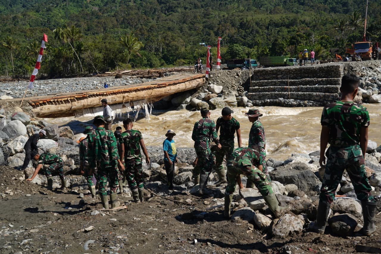 Beutong Ateuh — Rangkaian komponen Jembatan Bailey telah sampai di wilayah terdampak bencana Beutong Ateuh Banggala, Sabtu (20/12/2025). Para prajurit
