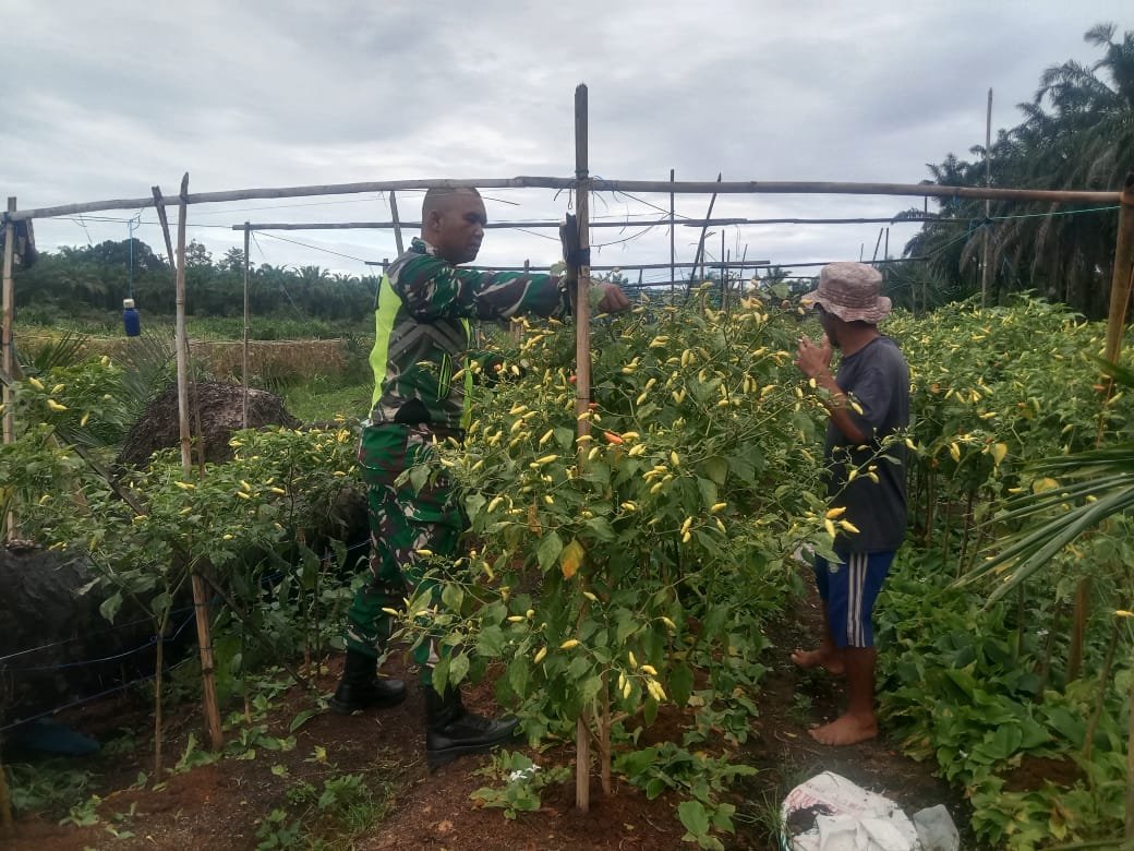 Subulussalam – Babinsa Koramil 01/Simpang Kiri Kodim 0118/Subulussalam, Koptu B. Pelawi, turun langsung membantu petani memanen cabai di lahan milik