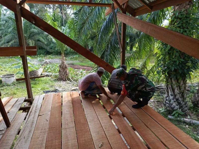 Perkuat Silaturahmi dan Nilai Religius, Babinsa Jajaran Korem 012/TU di Aceh Jaya Bersama Warga Bangun Balai Pengajian