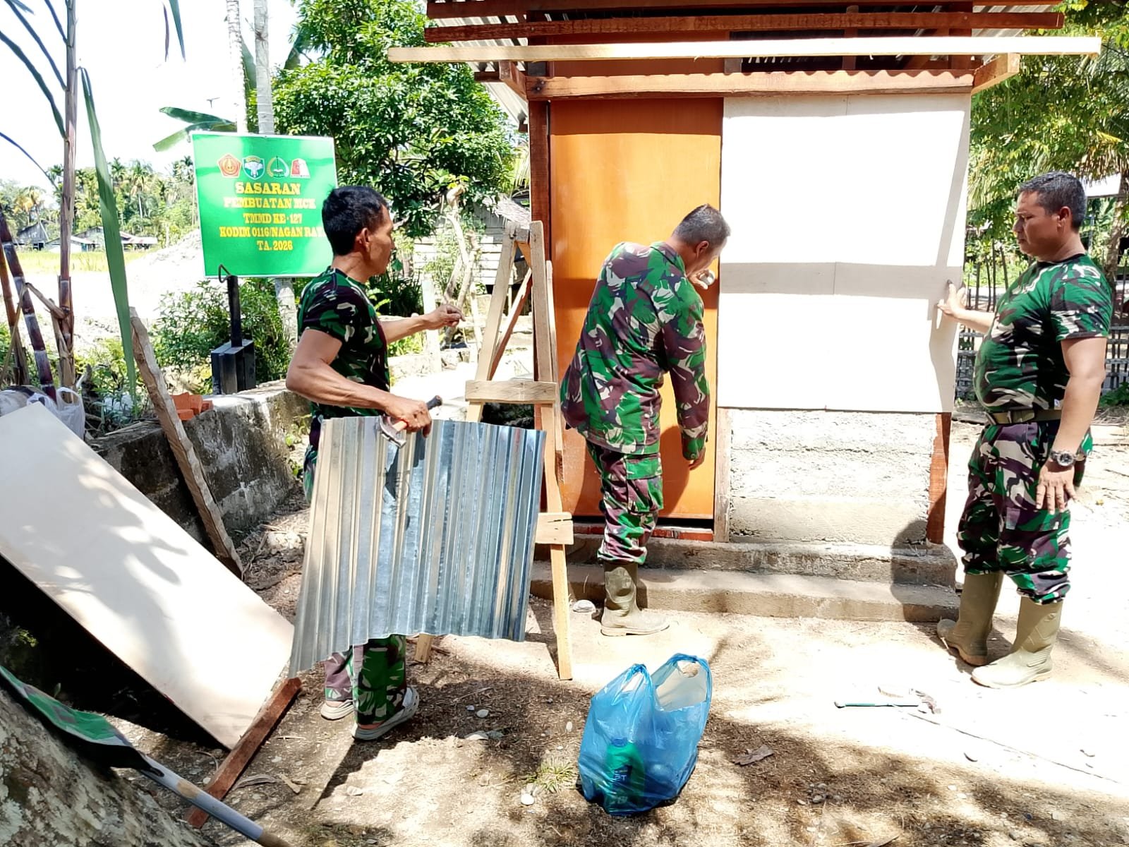 NAGAN RAYA — Pembangunan fasilitas umum mandi cuci kakus (MCK) dalam program TMMD Ke-127 Kodim 0116/Nagan Raya terus menunjukkan kemajuan