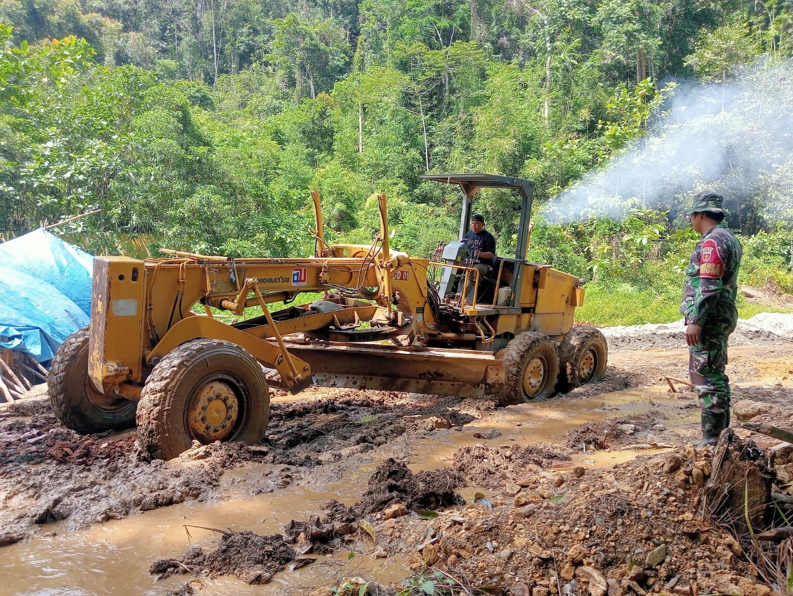 Dandim 1412/Kolaka Letkol Inf Choky Gunawan Tinjau Progres TMMD 126 , Disambut Langsung oleh Danpos Jembatan Kapten Inf Sudarto