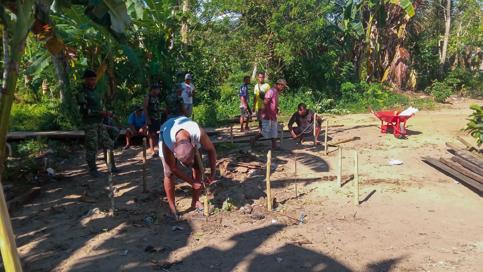 Kaimana – Satgas TMMD ke-127 dari Kodim 1804/Kaimana sedang melaksanakan pembangunan infrastruktur dasar di Kampung Sisir 2, Kabupaten Kaimana. Saat