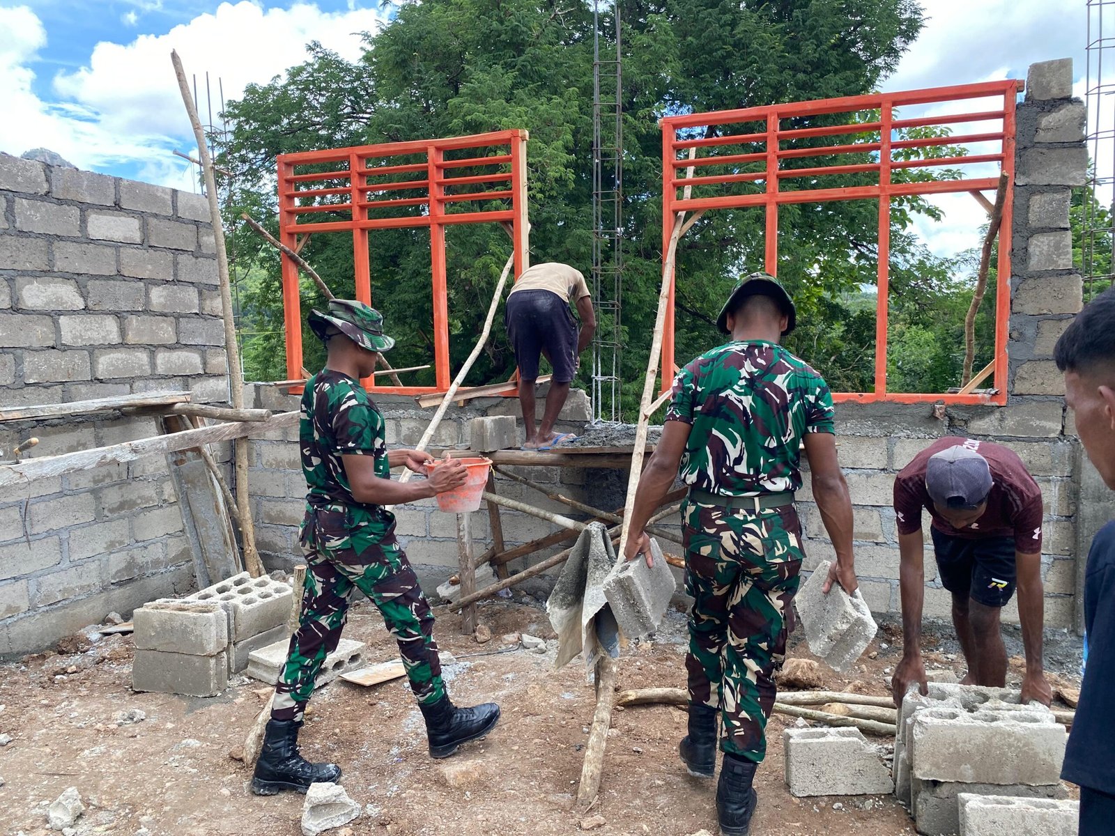 Semangat Tak Kenal Hati Panas, Satgas TMMD Kodim 1618/TTU Terus Membangun RKB