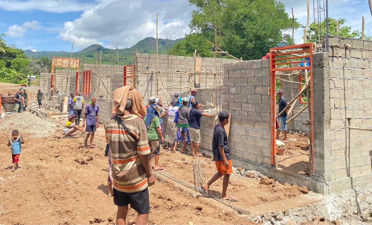 NTT-Kefamenanu, Kamis 12/02/2026. Semangat gotong royong terus terlihat dalam pembangunan empat ruang kelas SMAN Bikomi Nilulat yang terletak di Desa
