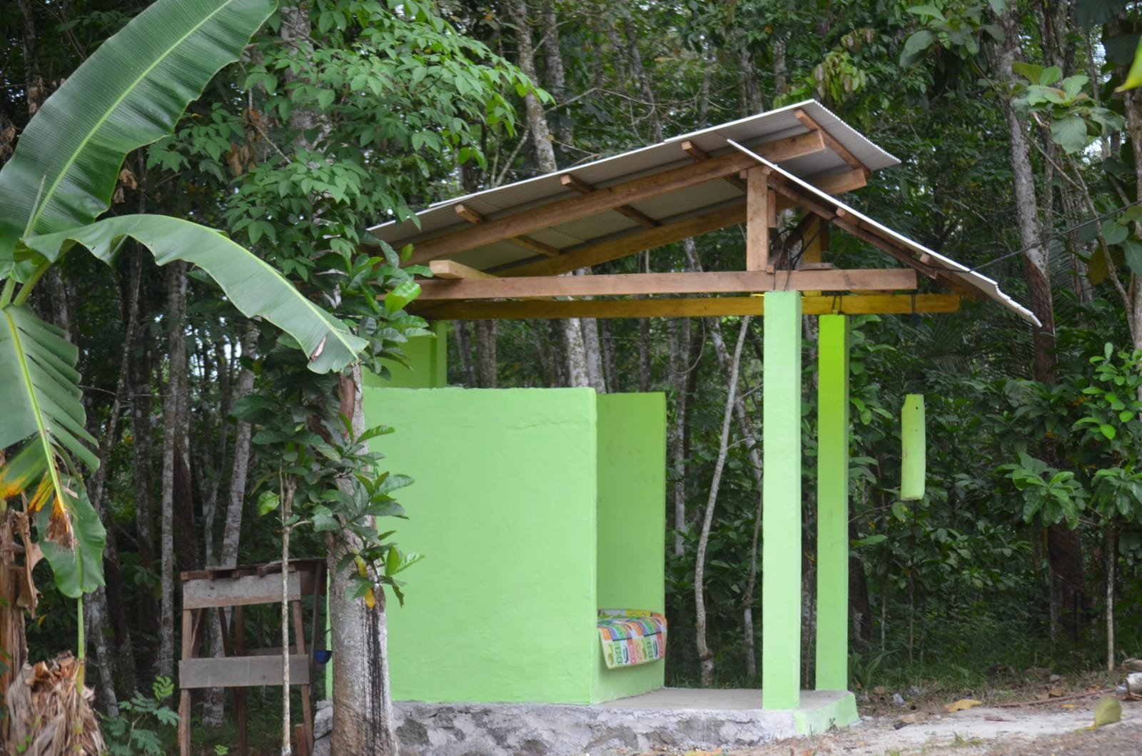 Way Kanan — Suasana penuh antusias tampak di Kampung Sriwijaya setelah pembangunan Pos Keamanan Lingkungan (Poskamling) yang dikerjakan Satgas TMMD