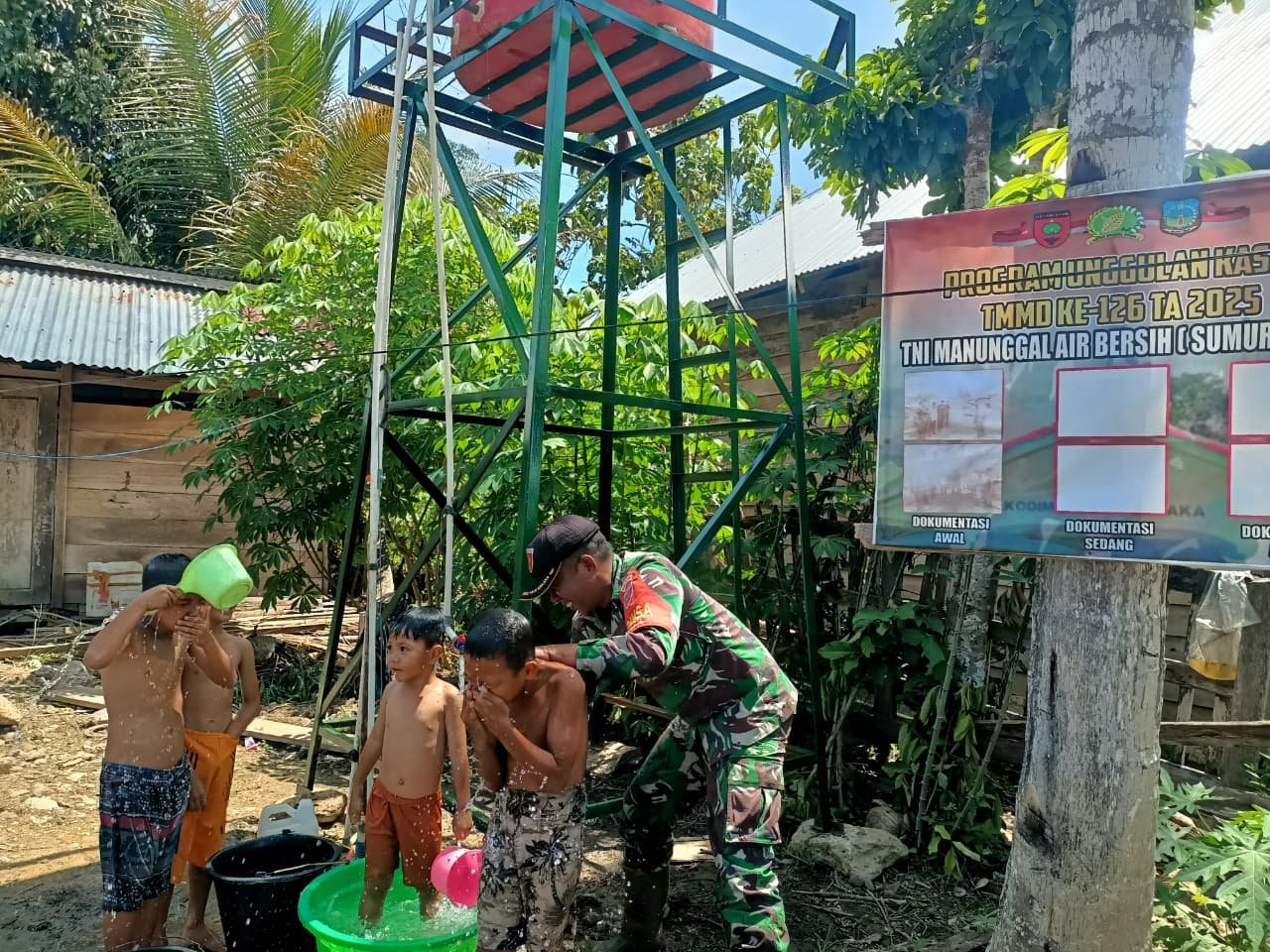 Tonggauna, 03 November 2026 – Setelah sumur bor TMMD resmi berfungsi, Babinsa Desa Tonggauna terlihat mengajak anak-anak desa untuk memanfaatkan