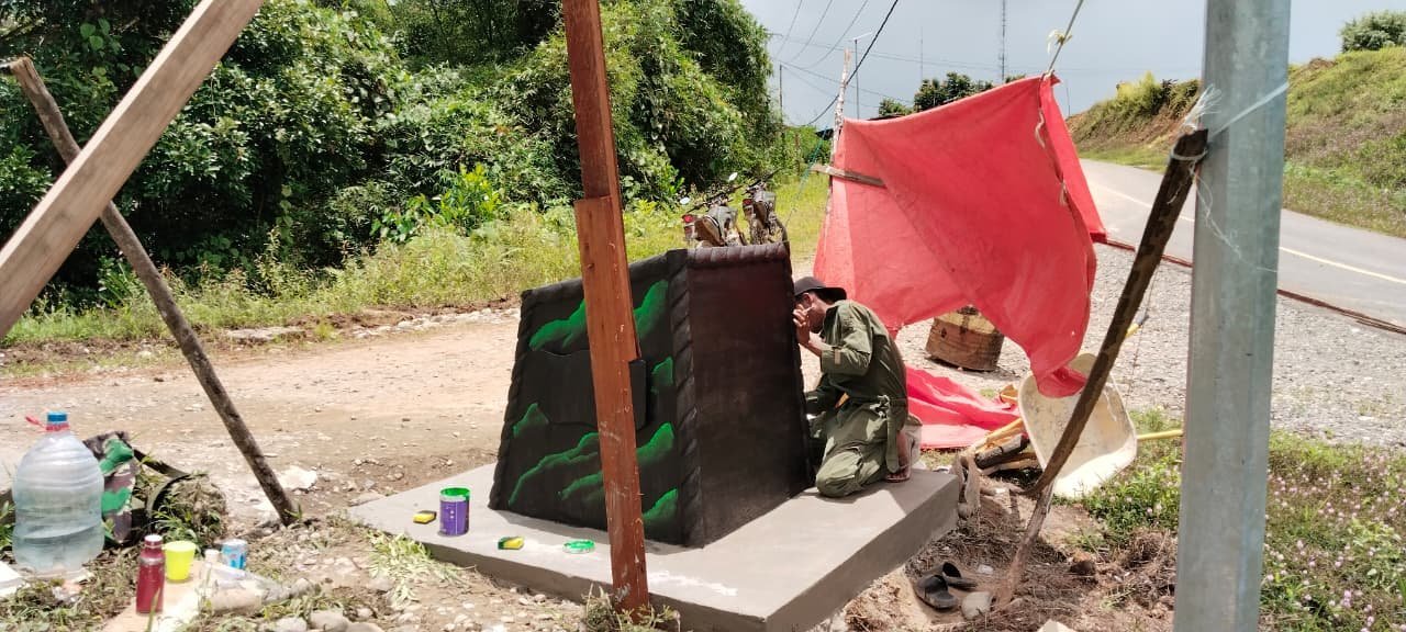 Boven Digoel – Warga Kampung Waropko menunjukkan antusiasme tinggi saat menyaksikan proses penyelesaian Tugu Prasasti TMMD ke-126 Kodim 1711/BVD, Minggu