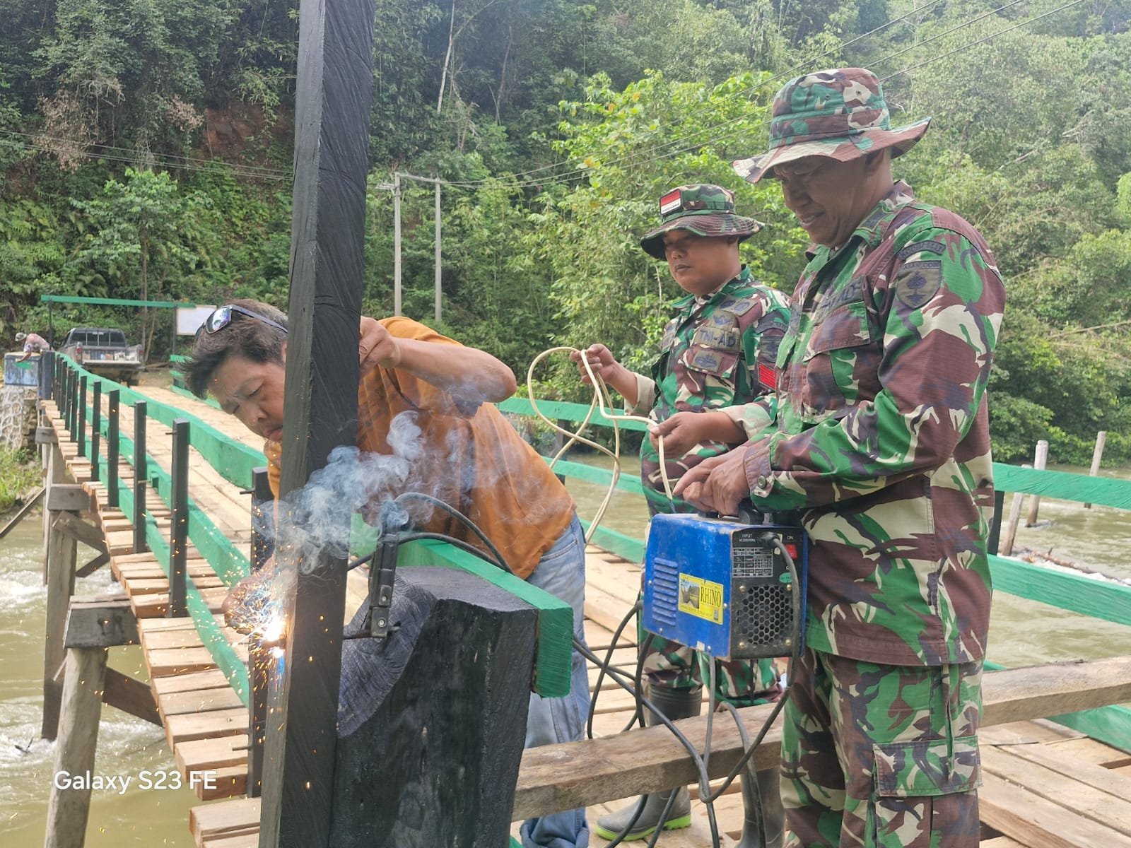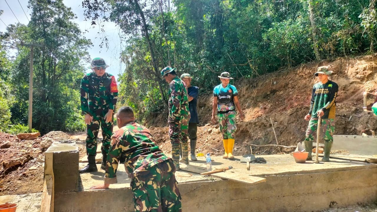 Kolaka Timur, 29 Oktober 2025 — Suasana kerja penuh semangat dan kebersamaan tampak di lokasi pembangunan jembatan TMMD ke-126 Kodim