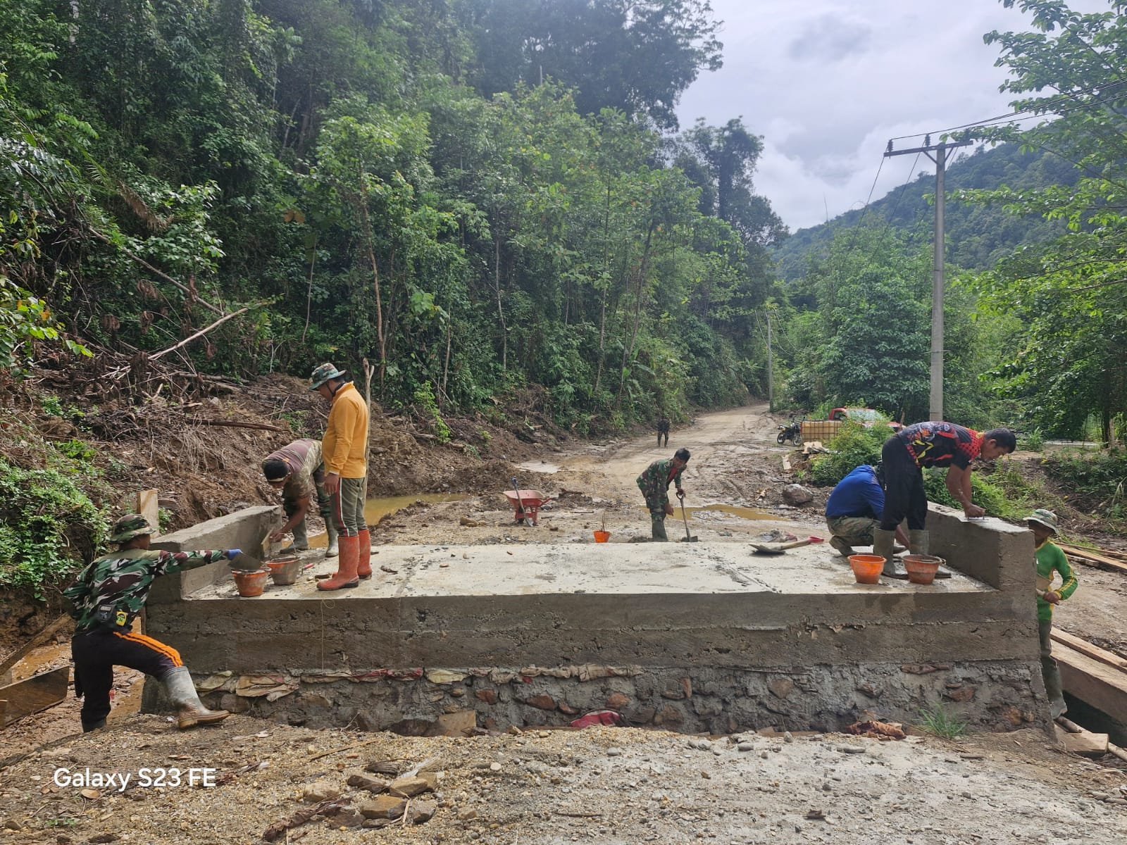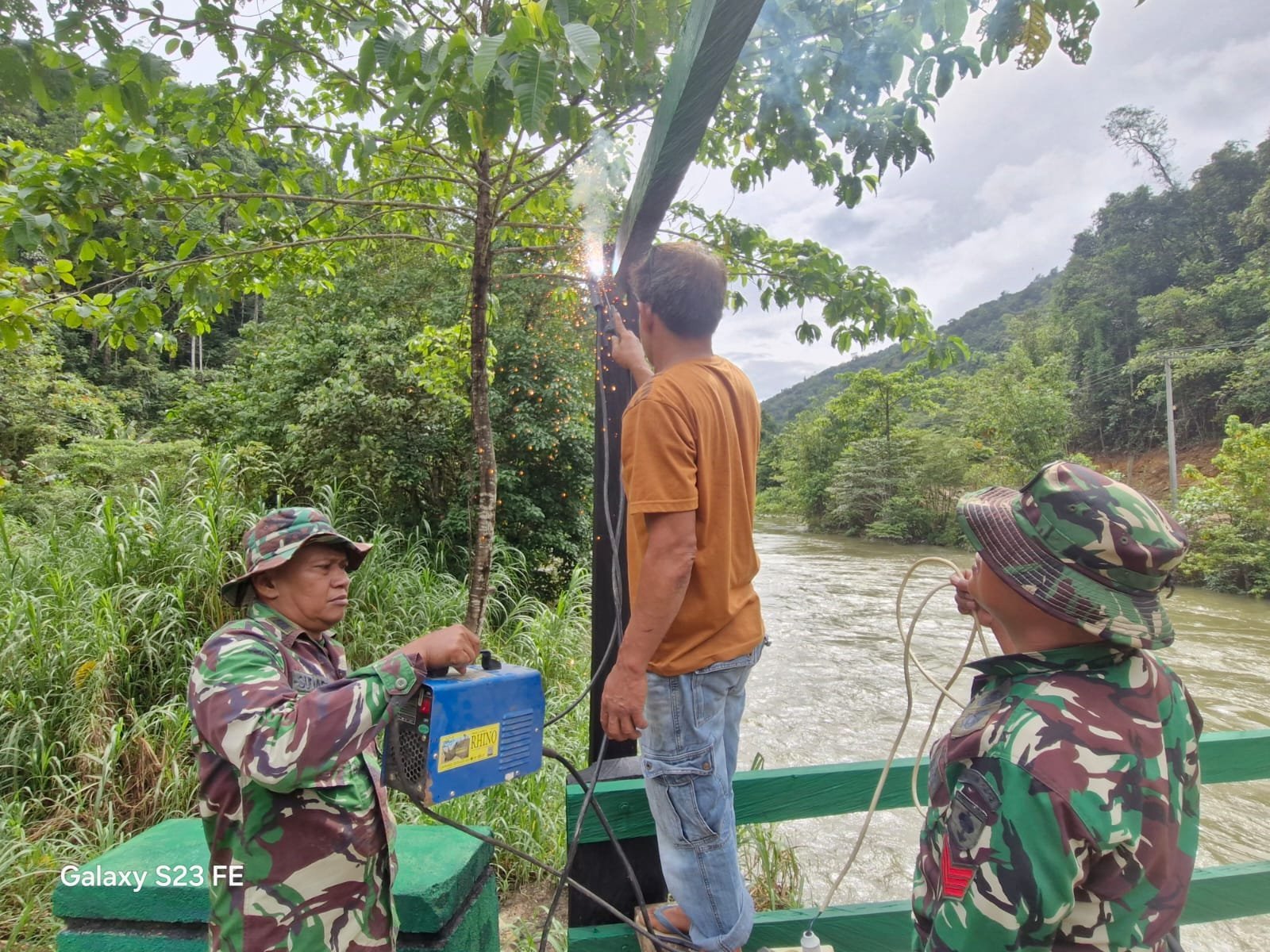 Sinergi Hebat, Satgas TMMD 126 dan Warga Rampungkan Pengelasan Tiang Pembatas Jembatan Demi Keselamatan Warga