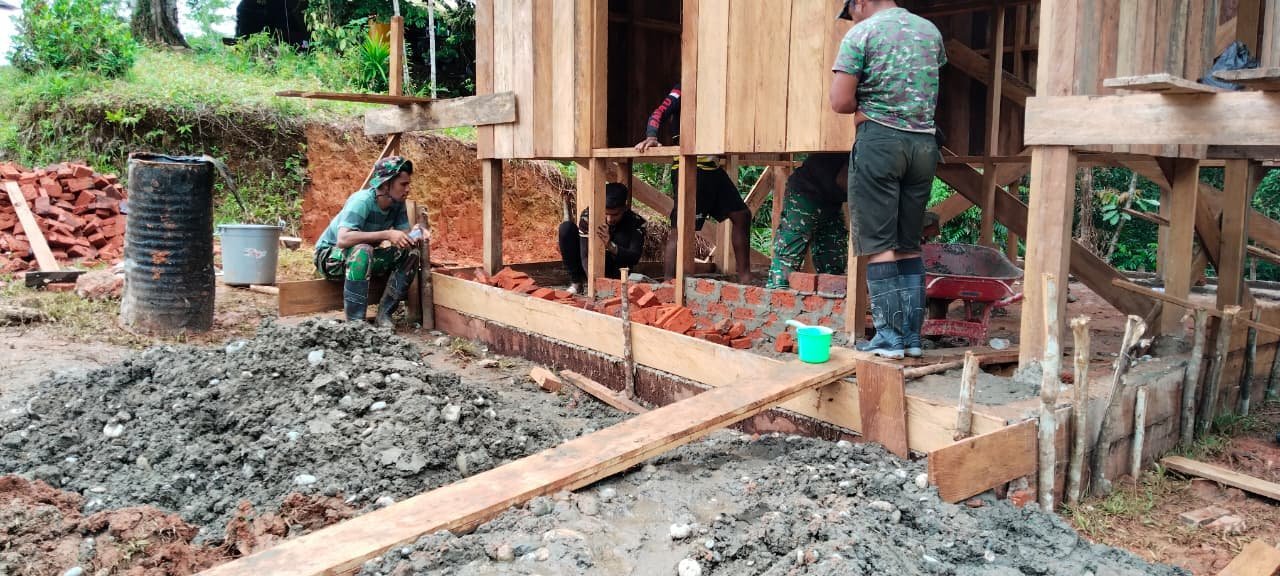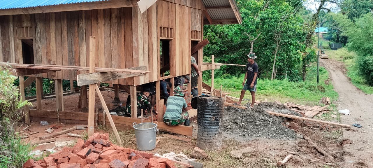 Boven Digoel, Papua Selatan — Pembangunan Rumah Tidak Layak Huni (RTLH) ke-5 di Kampung Waropko oleh Satgas TMMD ke-126 Kodim