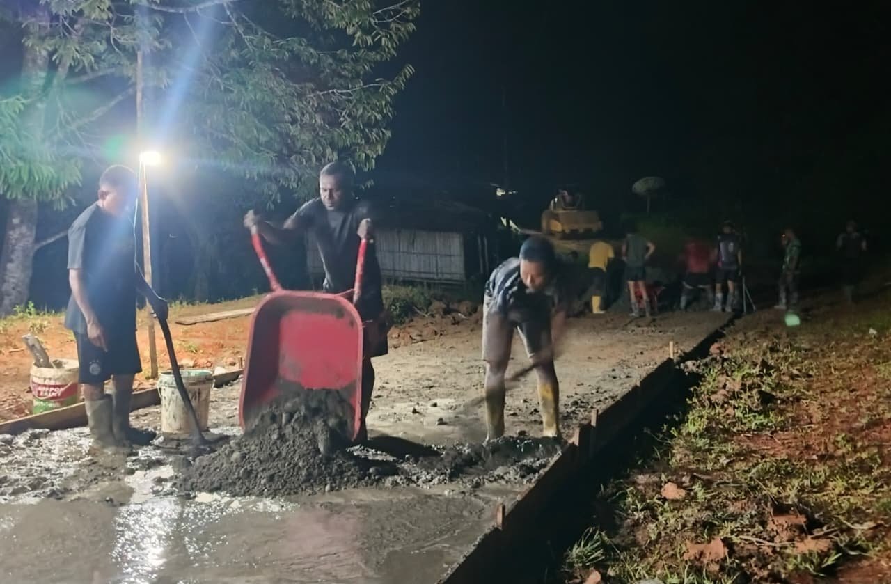 Boven Digoel, Papua Selatan — Semangat gotong royong antara Satgas TMMD ke-126 Kodim 1711/BVD dan masyarakat Kampung Waropko tetap menyala