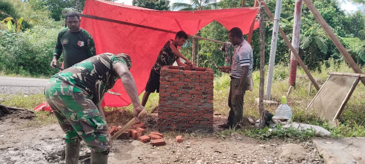 Boven Digoel, Papua Selatan — Pembangunan MCK ke-5 yang menjadi salah satu sasaran fisik TMMD ke-126 Kodim 1711/BVD di Kampung