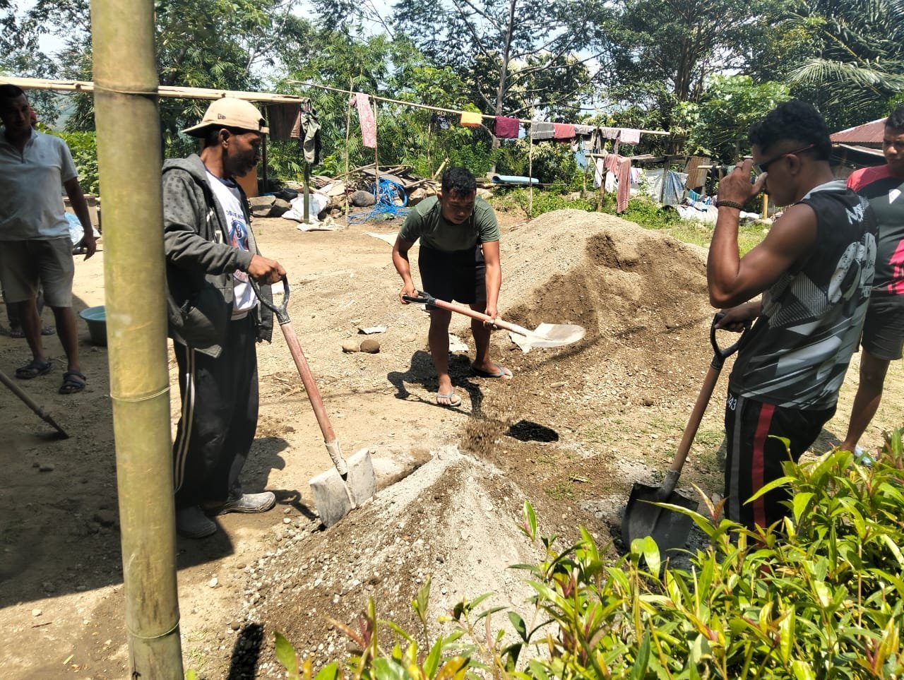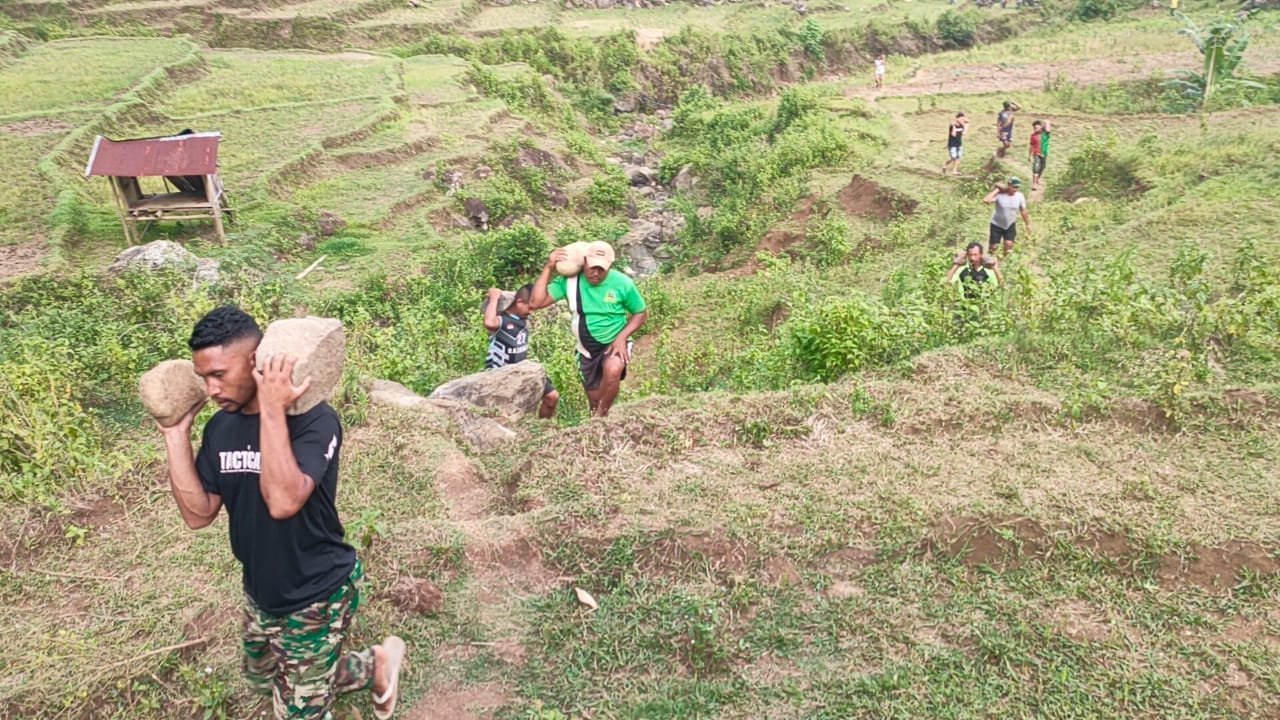 Riung, 28 Oktober 2025 — Suasana gotong royong dan kebersamaan tampak jelas di Desa Riung, Kecamatan Riung, saat anggota Kodim