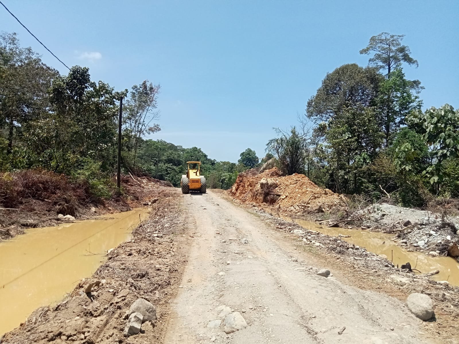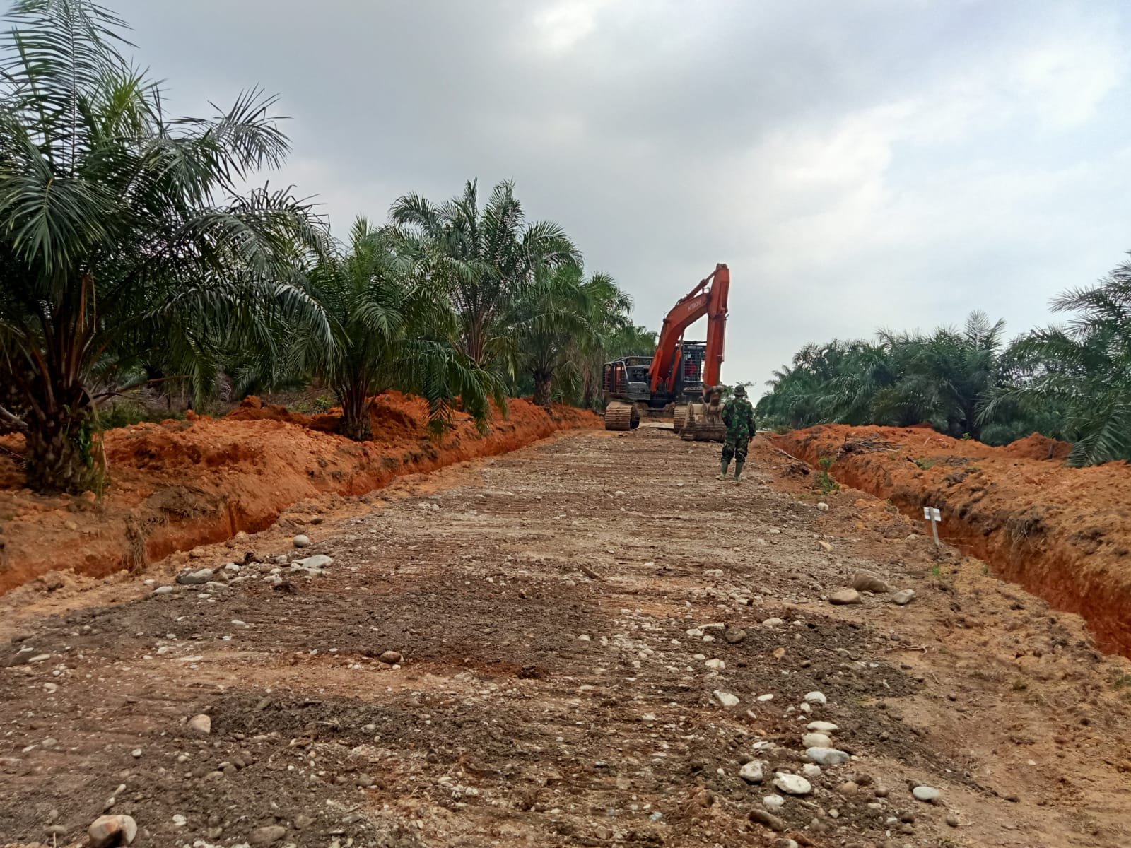 NAGAN RAYA – Di ujung jalur tanah yang sedang dibangun, sebuah excavator berdiri seperti penjaga kerja keras. Di belakangnya, anggota