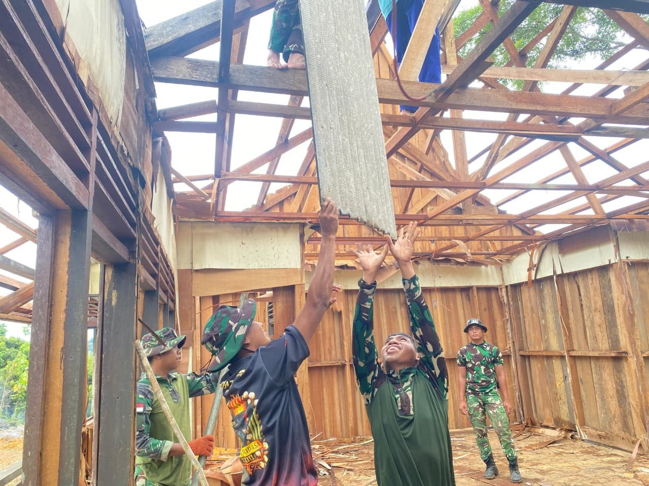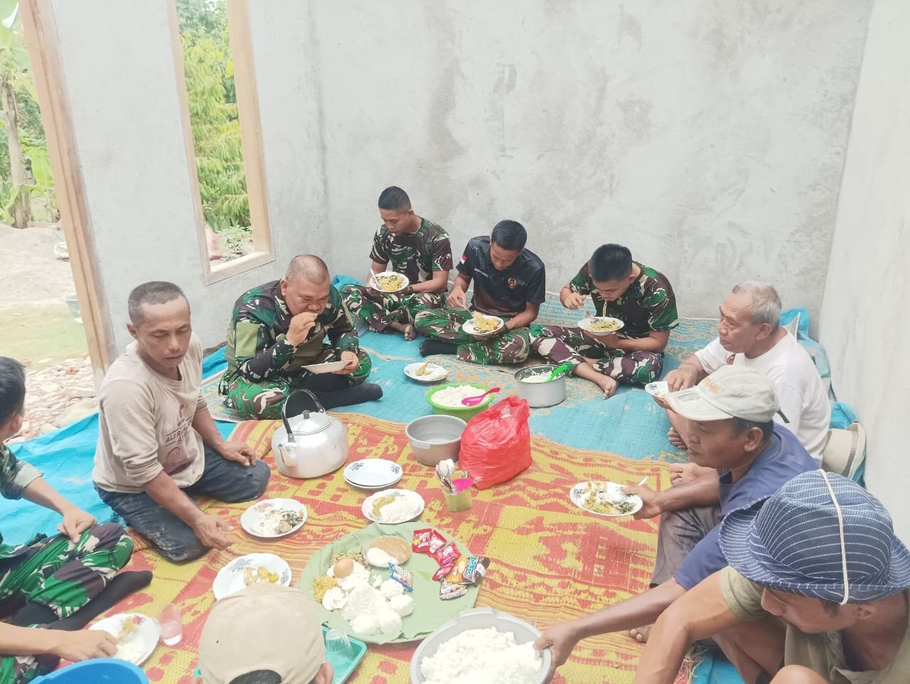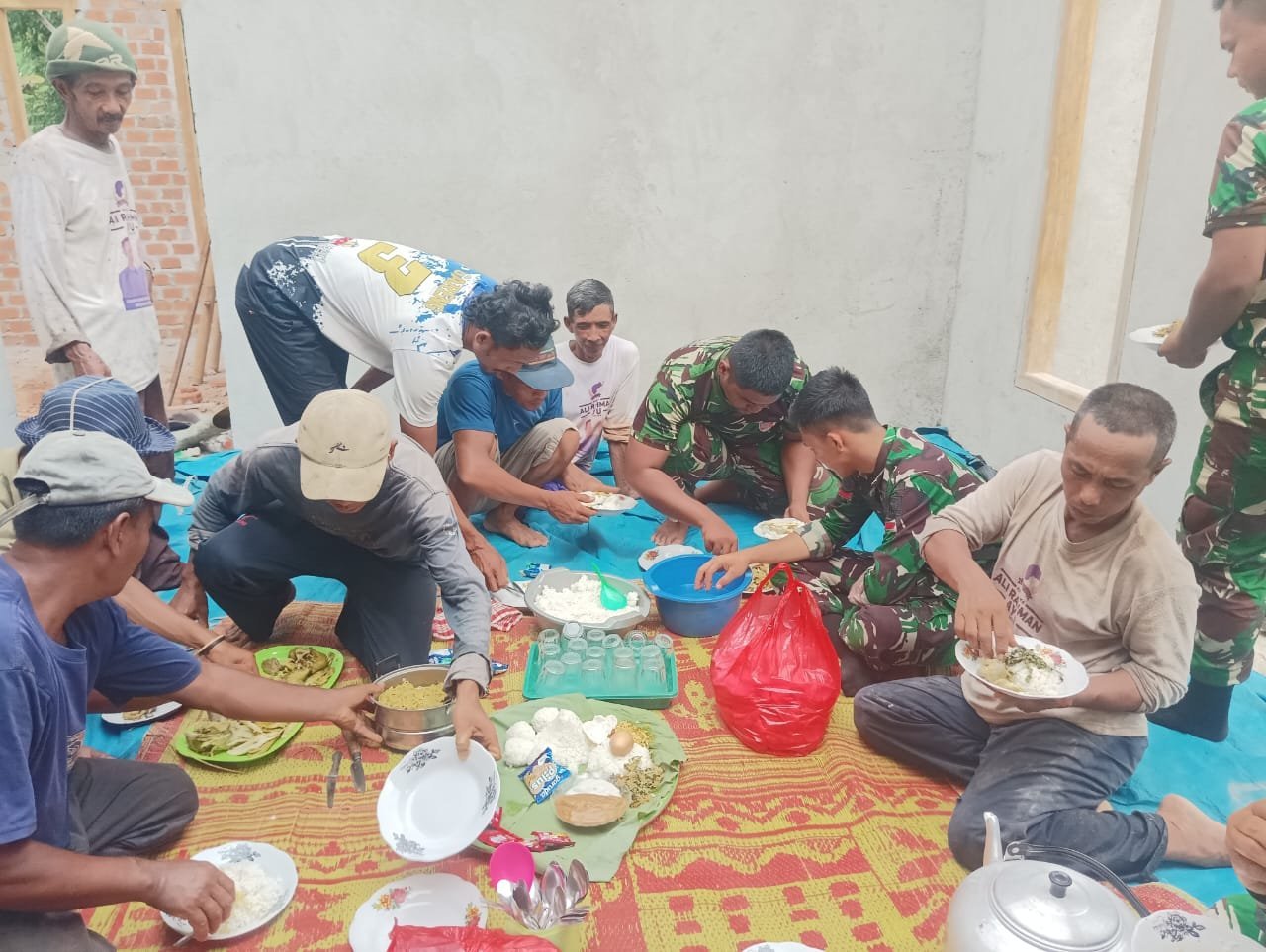 Wujud Syukur atas Progres RTLH, Satgas TMMD 126 dan Warga Kampung Sriwijaya Gelar Makan Bersama di Rumah Bapak Parnen