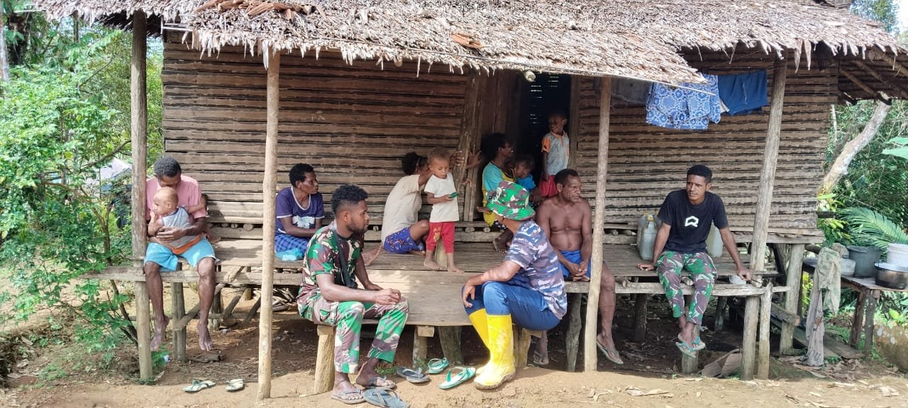 Boven Digoel, Papua Selatan – Kehangatan dan keakraban tampak jelas terjalin di sela-sela waktu istirahat personel Satuan Tugas (Satgas) TNI
