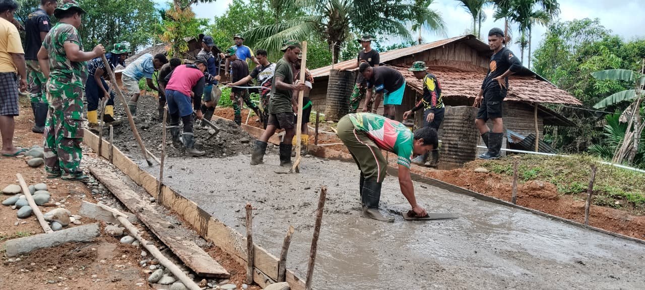 Boven Digoel – Nilai kemanunggalan TNI dan rakyat kembali tercermin nyata dalam pelaksanaan TNI Manunggal Membangun Desa (TMMD) ke-126 Kodim