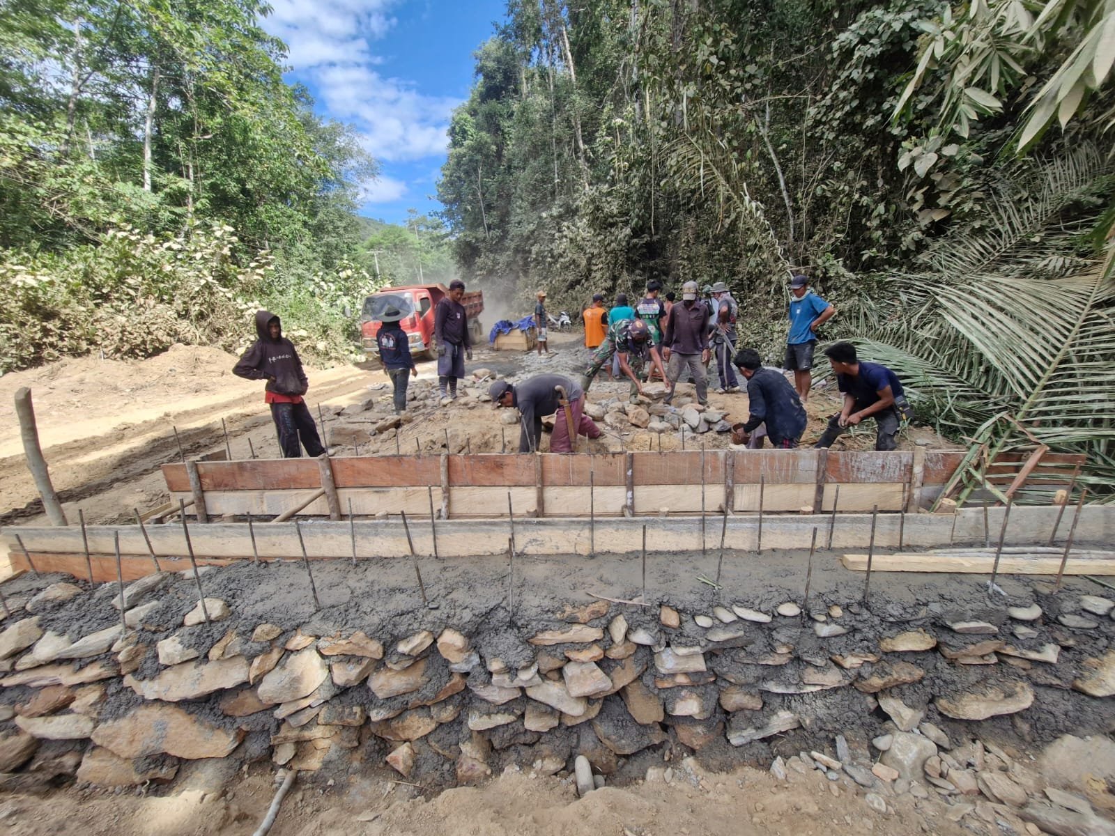 Kolaka Timur, 20 Oktober 2025 – Semangat gotong royong kembali tampak di lokasi kegiatan TNI Manunggal Membangun Desa (TMMD) ke-126