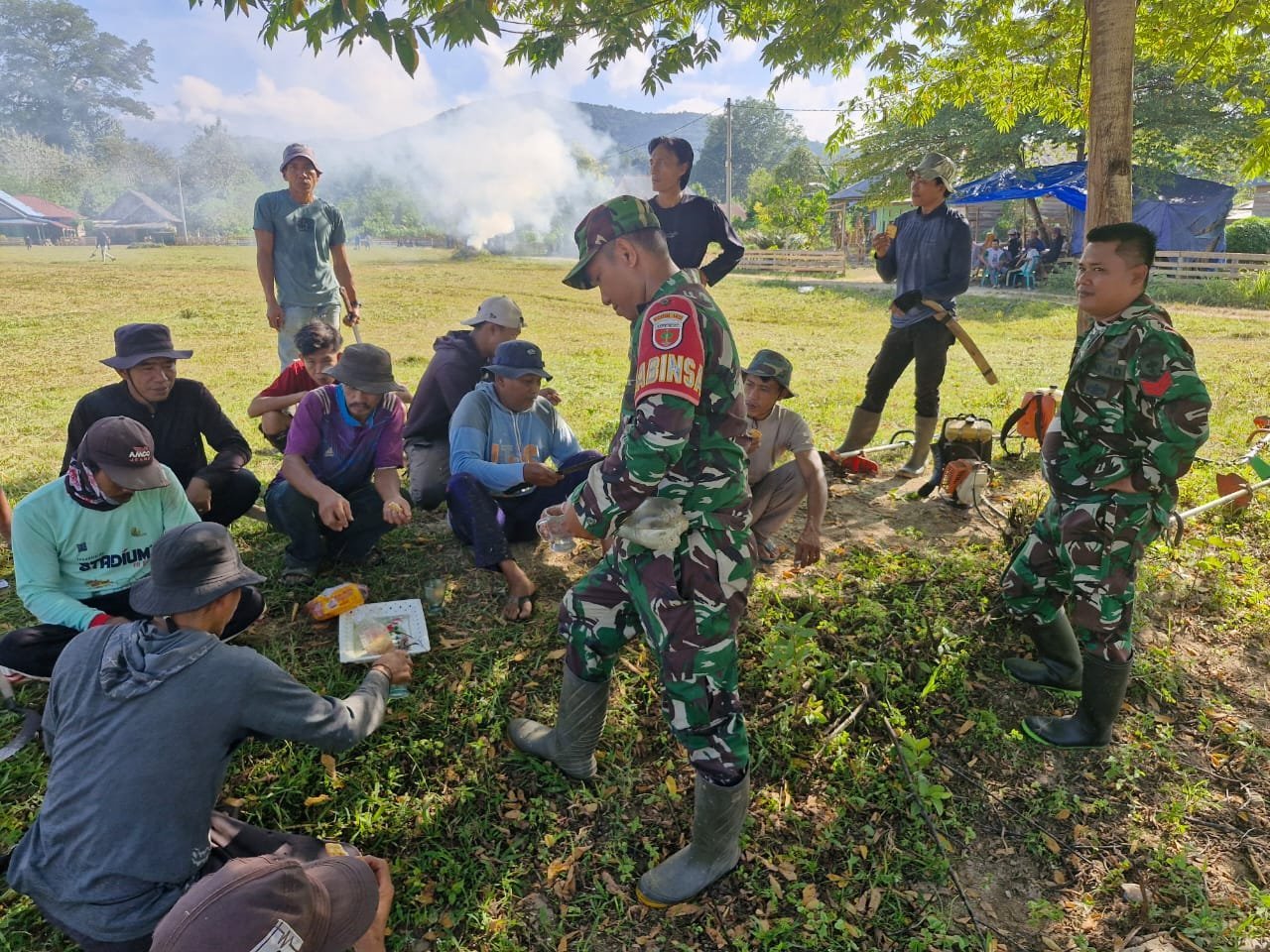 Kolaka Timur, 19 Oktober 2025 – Suasana penuh keakraban dan kebersamaan terlihat di lokasi TNI Manunggal Membangun Desa (TMMD) ke-126