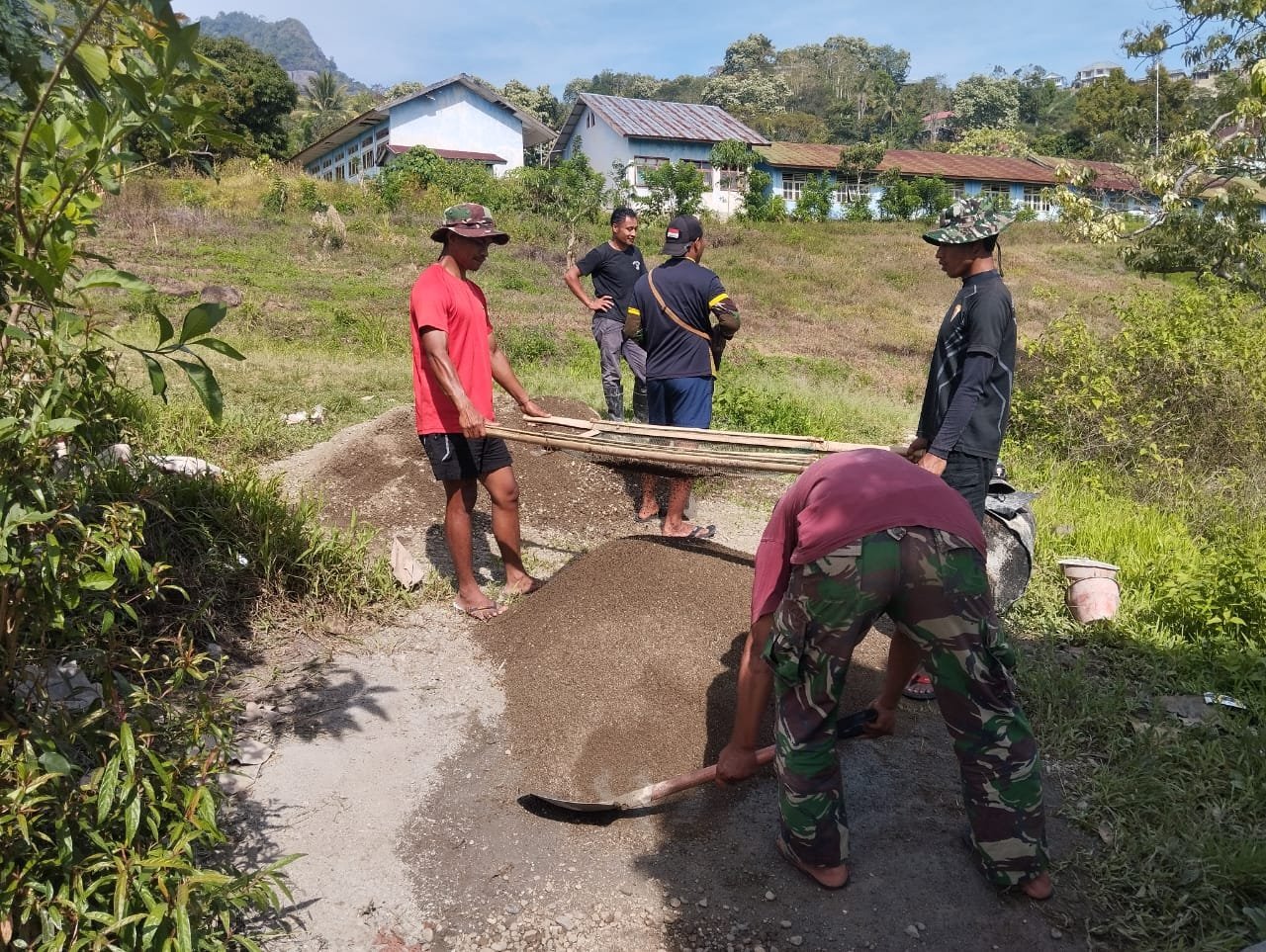 Manggarai, 19 Oktober 2025 — Kebersamaan dan semangat gotong royong antara TNI dan masyarakat tampak jelas di Desa Beamese, Kecamatan