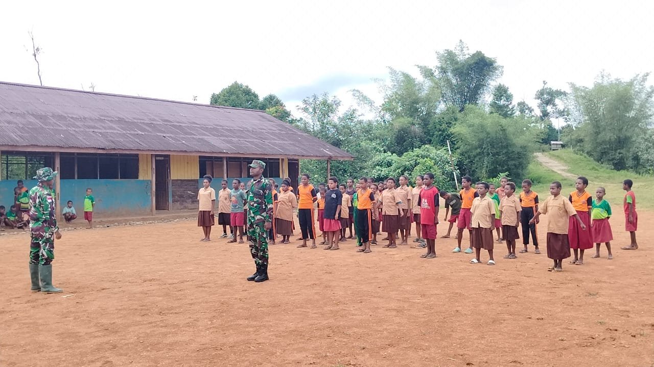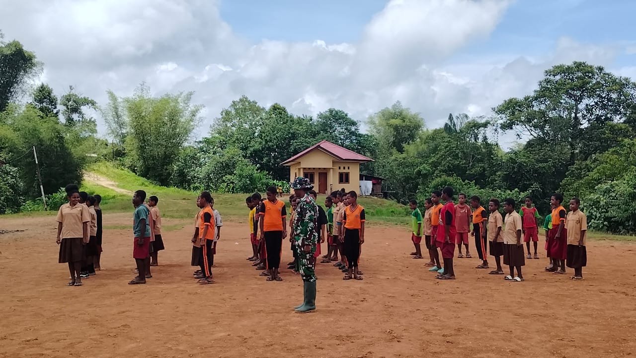 Waropko, Boven Digoel — Dalam upaya menanamkan nilai-nilai kedisiplinan sejak usia dini, Satuan Tugas (Satgas) TMMD ke-126 Kodim 1711/Boven Digoel