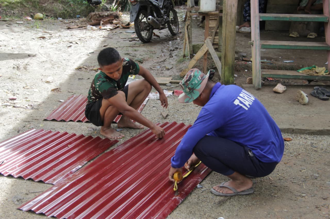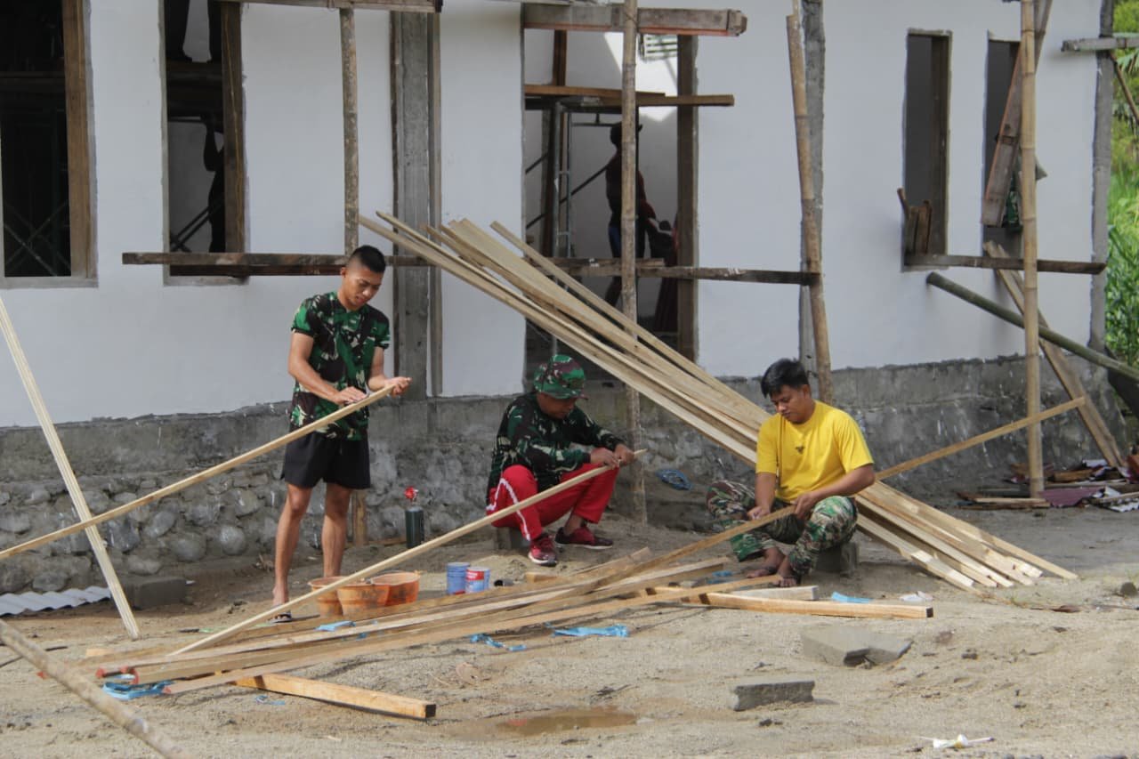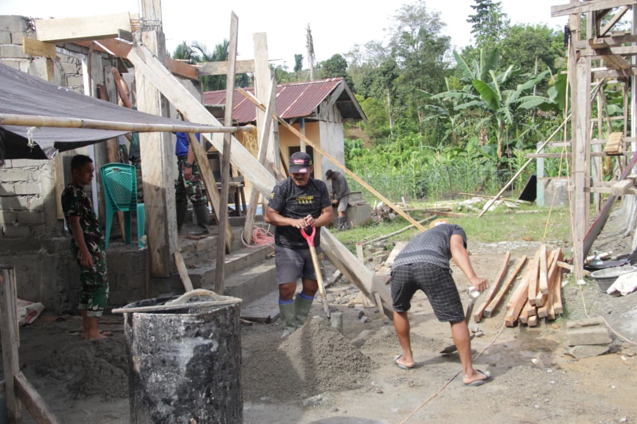 Dedikasi Anggota Satgas TMMD 127 Kodim 0430/BA Teruskan Pekerjaan RTLH Ibu Suwarti hingga Malam